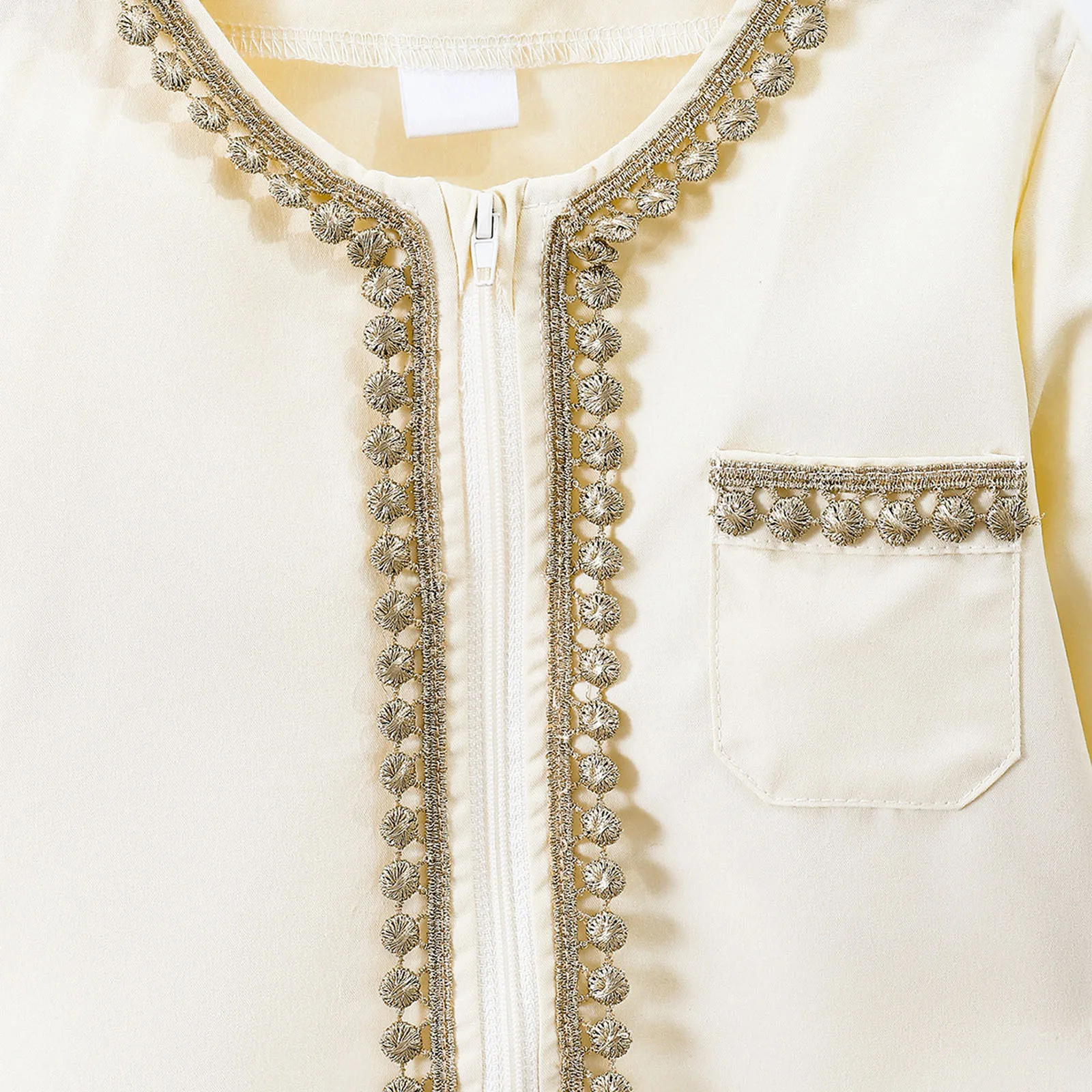 Muslim Boys Robe Kids Arabic Islamic Abaya Kaftan Prayer Clothing Long Sleeve Embroidered Zipper Gown Top Ramadan Eid Thobe