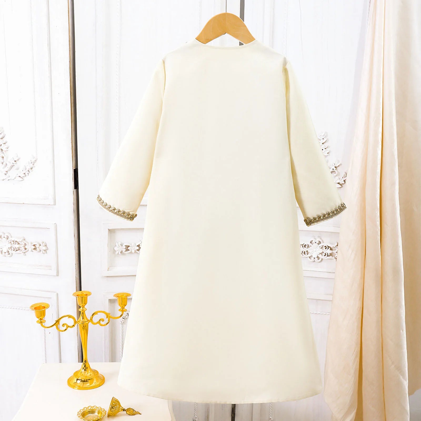 The embroidered trim adds a touch of elegance and cultural charm, making it a standout piece for kids.