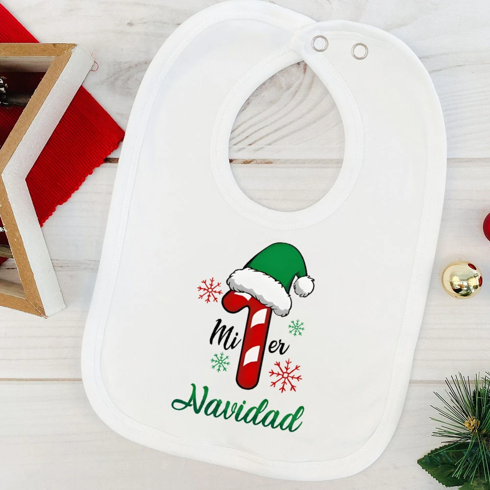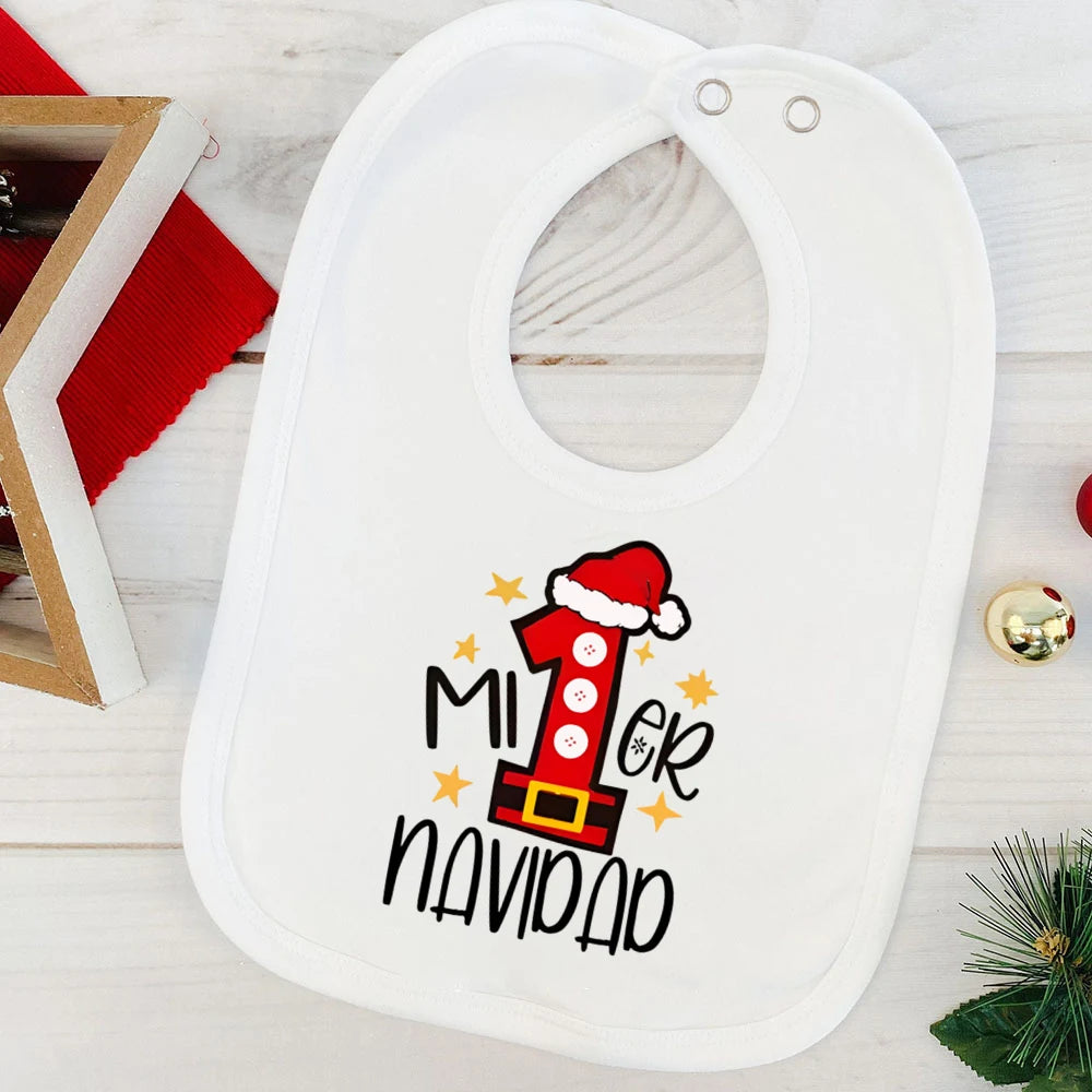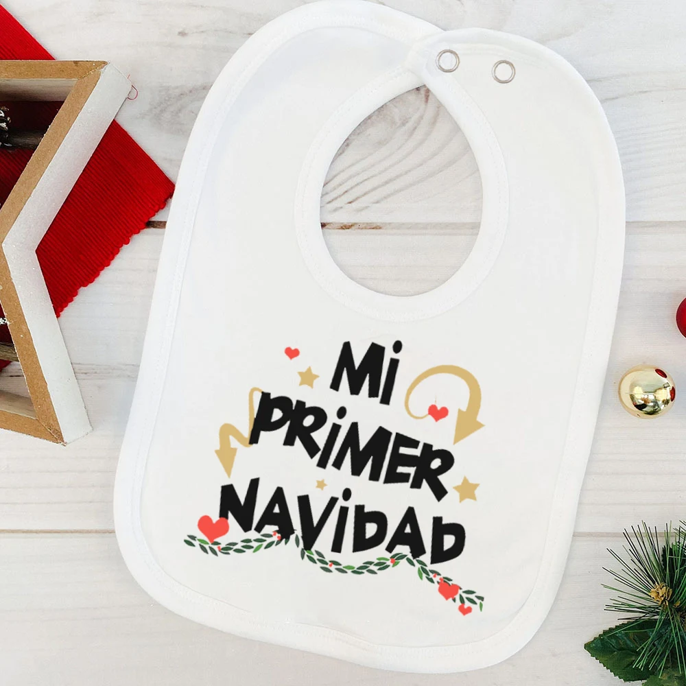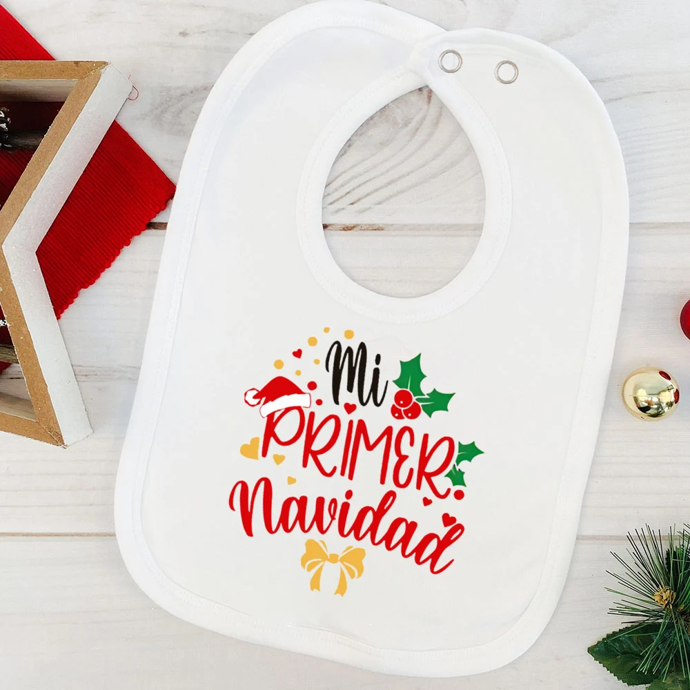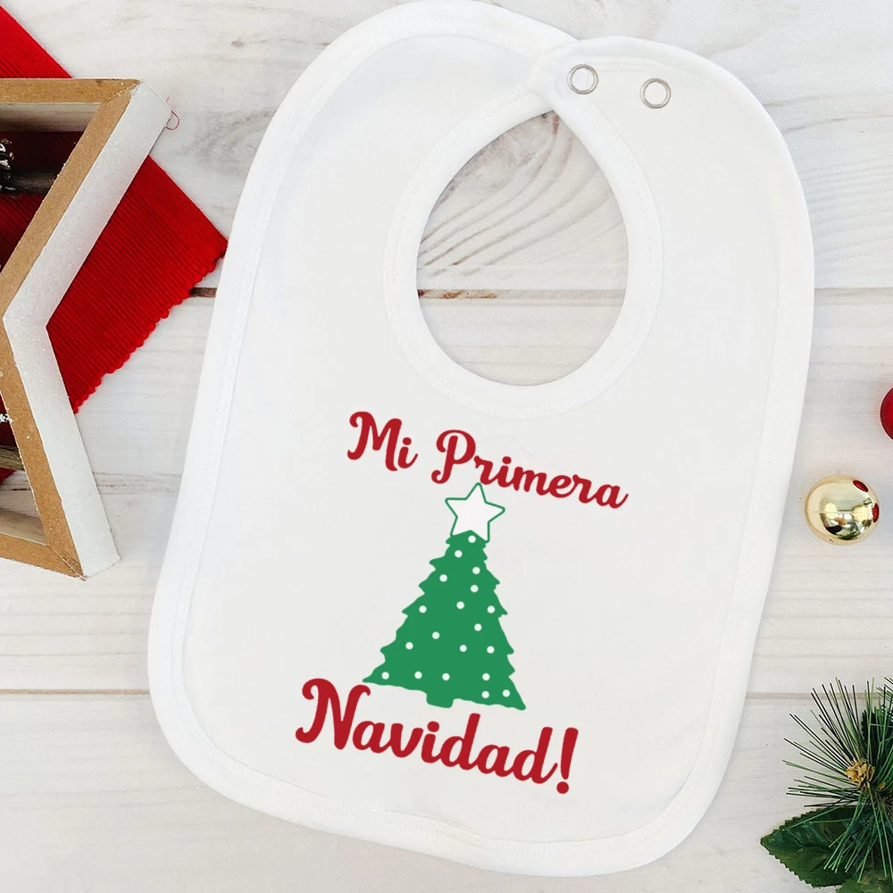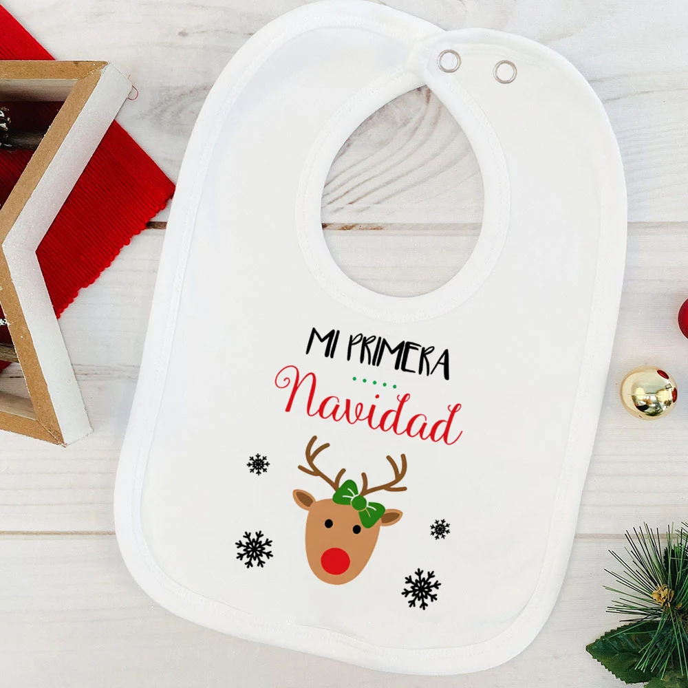 My First Christmas Deer Spanish Printed Baby Bib Bibs Christmas Party Girl Boy Newborn Cotton Saliva Towel Infant Christmas Gift