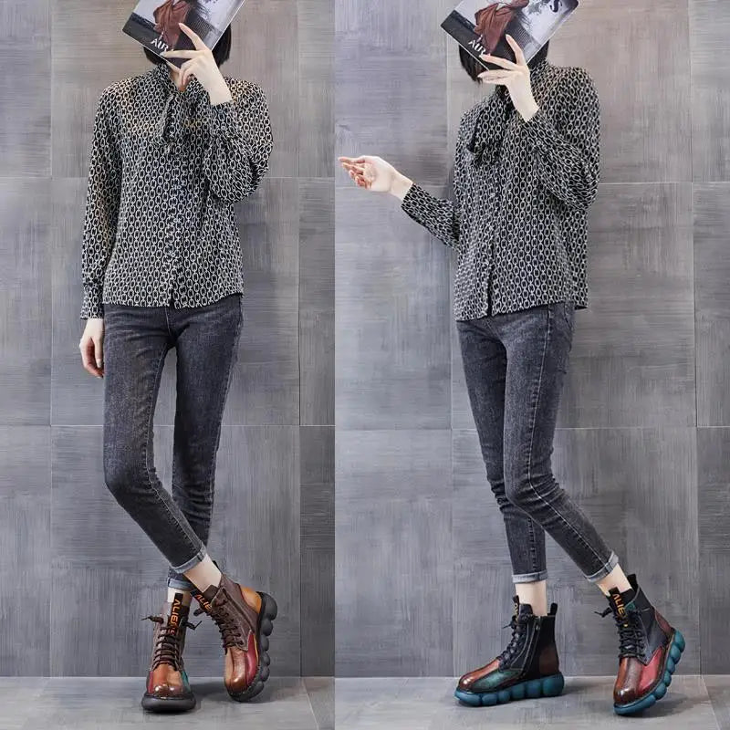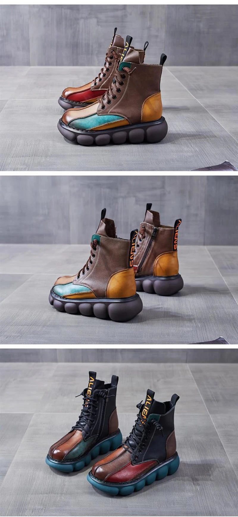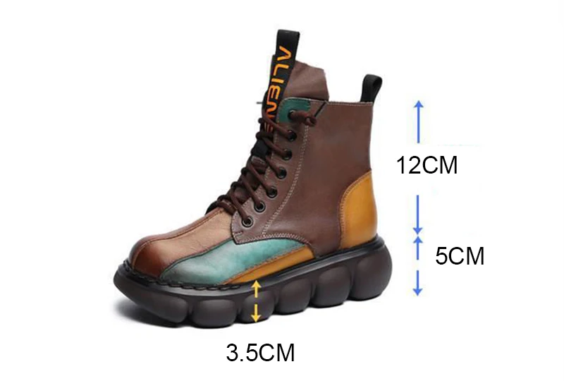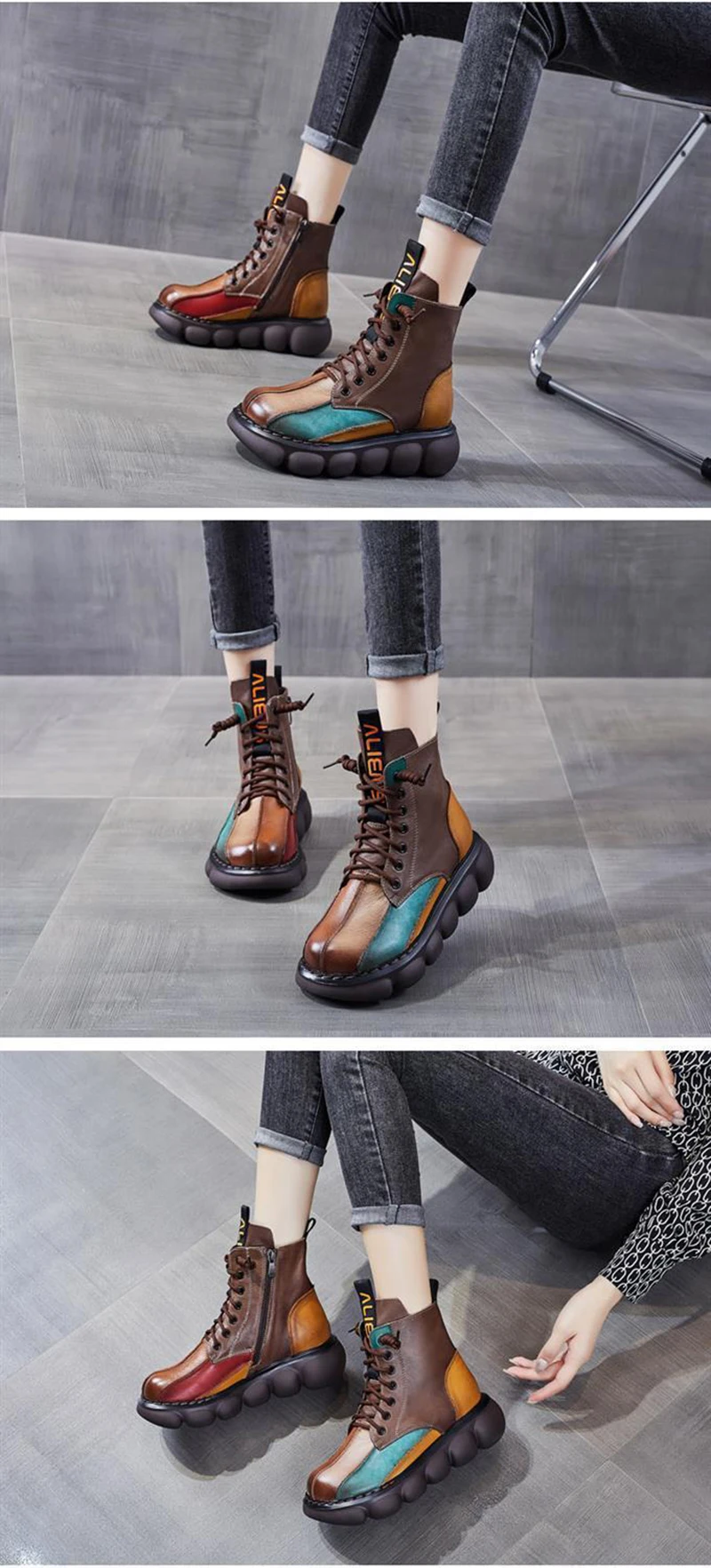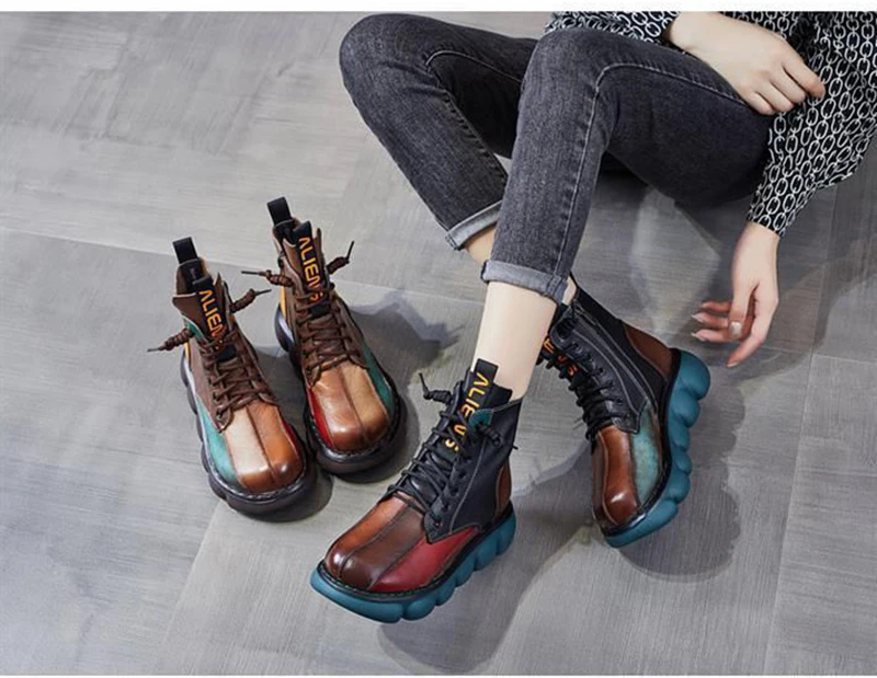 New Autumn Boots Women Mixed Colors Shoes Fashion Round Toe Lace Up Casual Thick-soled Ladies Flat Platform Short Boots