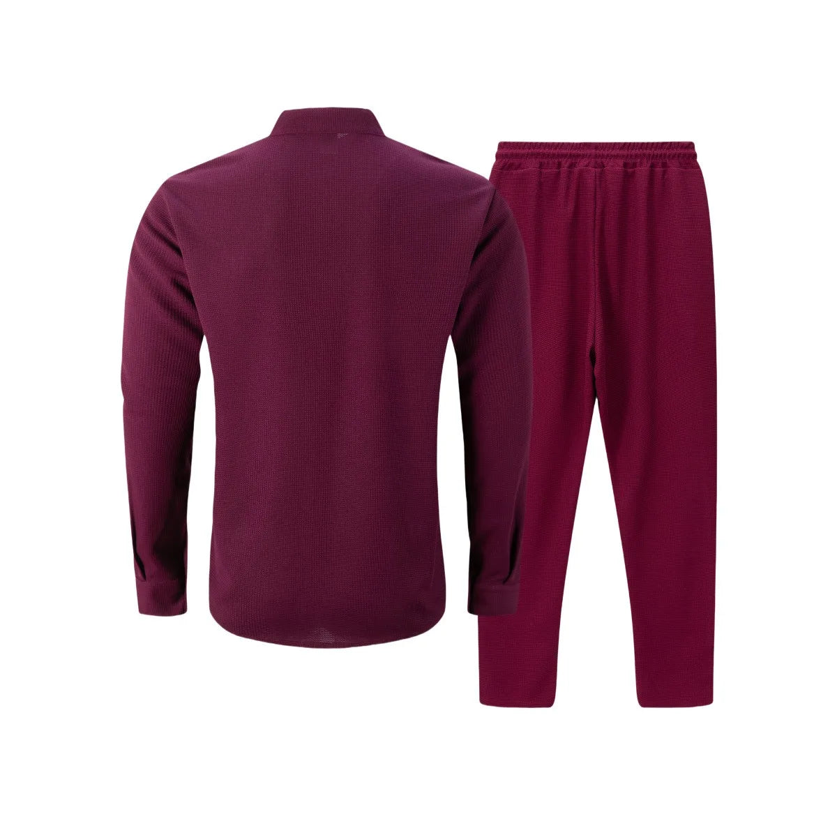 New autumn men's suit, waffle plain-colored long-sleevedshirt with pocket cardigan, stylish men's casual clothing long pants set