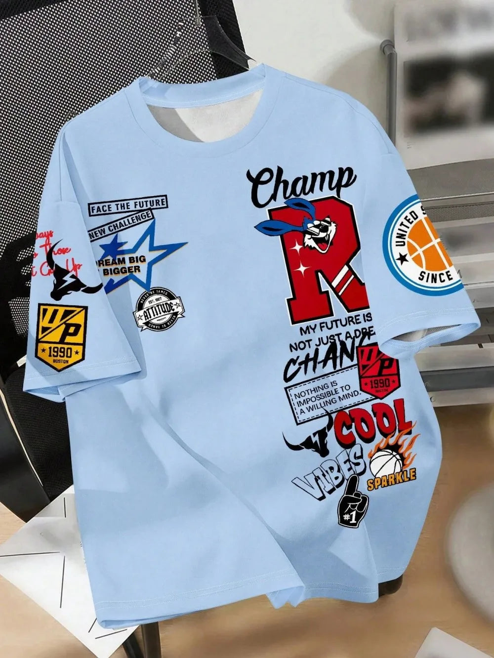 New Creative Breathable Men's T-shirt with Graffiti Printed Pattern Outdoor Quick drying Comfortable Sports Top
