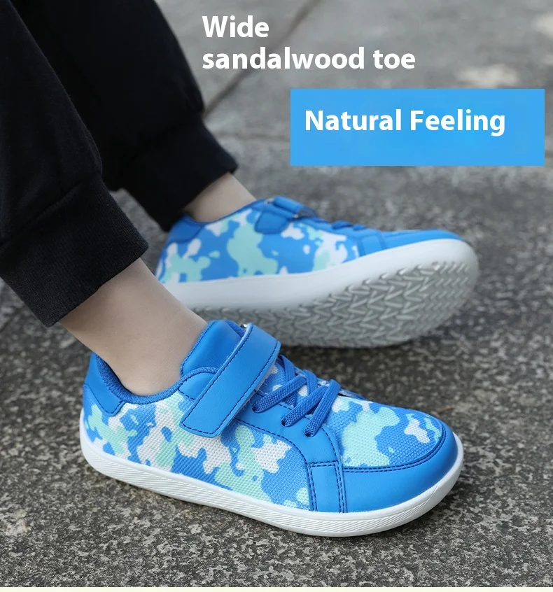 This toddler barefoot shoe features a wide toe box design, providing more room for the toes to move, ensuring the healthy development of a child's feet.
