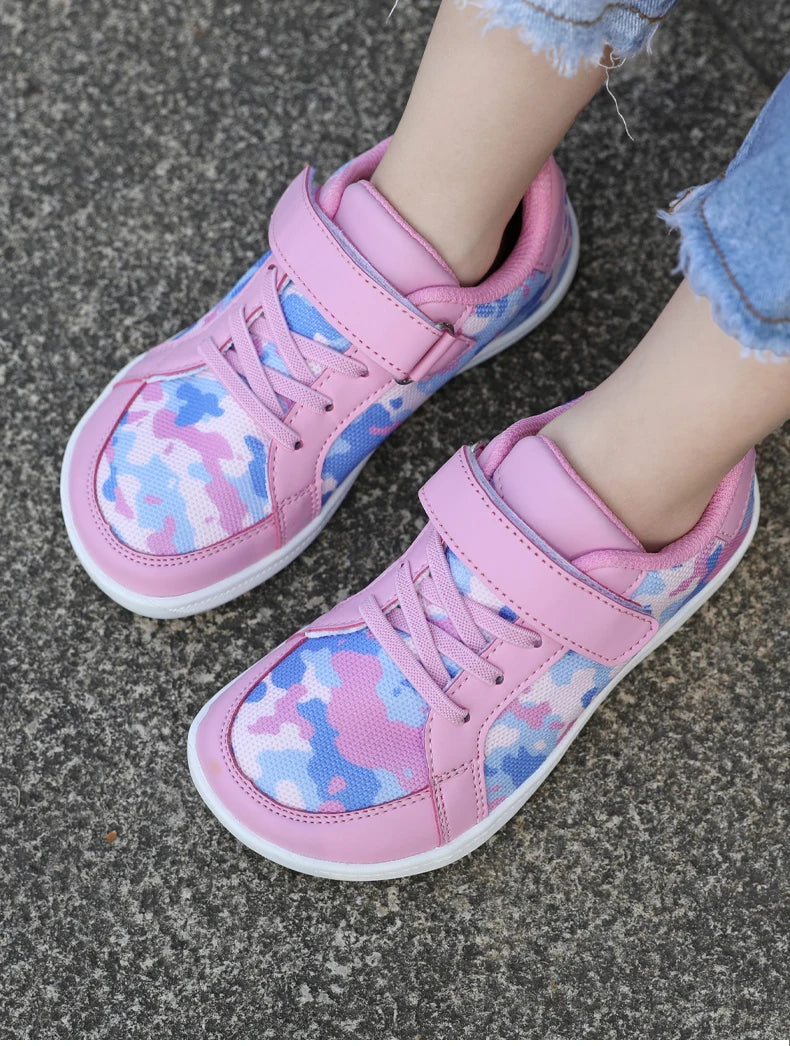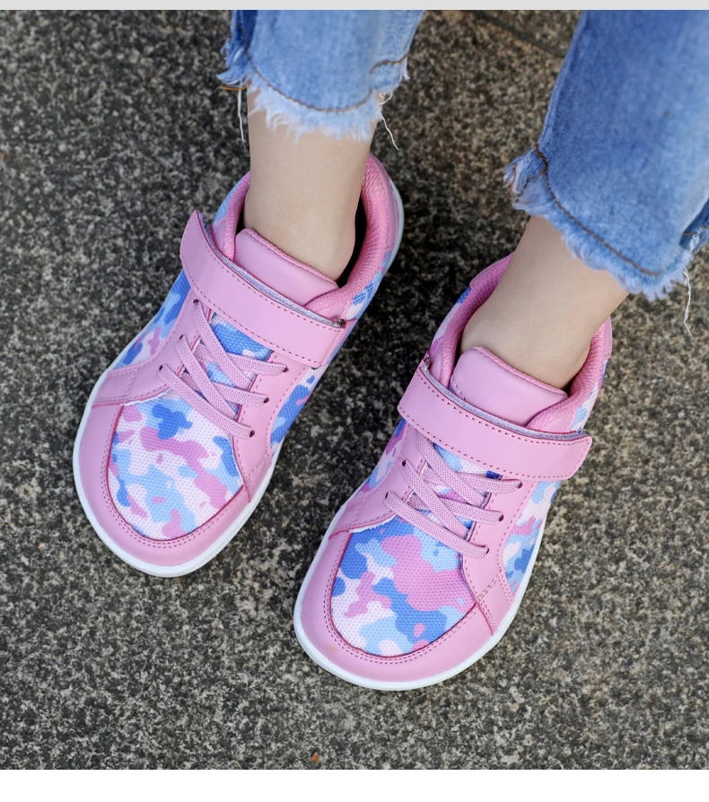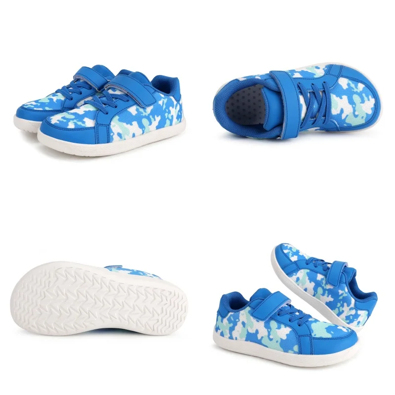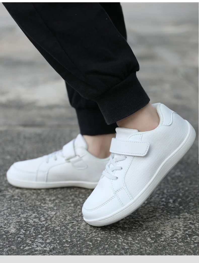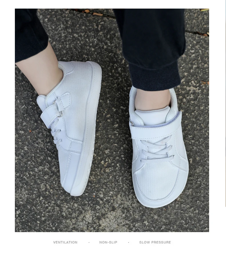 New Kids Wide Toe Barefoot Shoes Little/Big/Kid Hook Loop Minimalist Sneakers Artificial Leather Mesh Lightweight Shoes