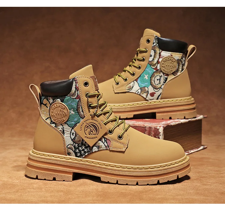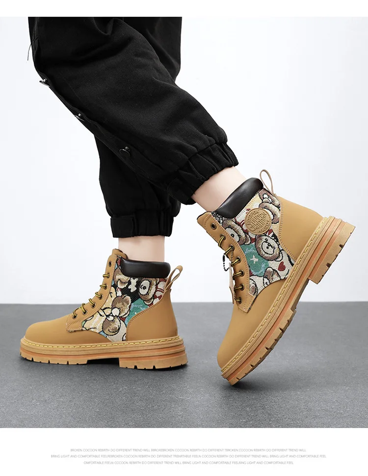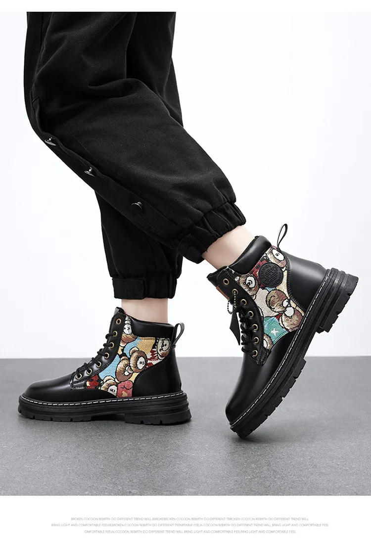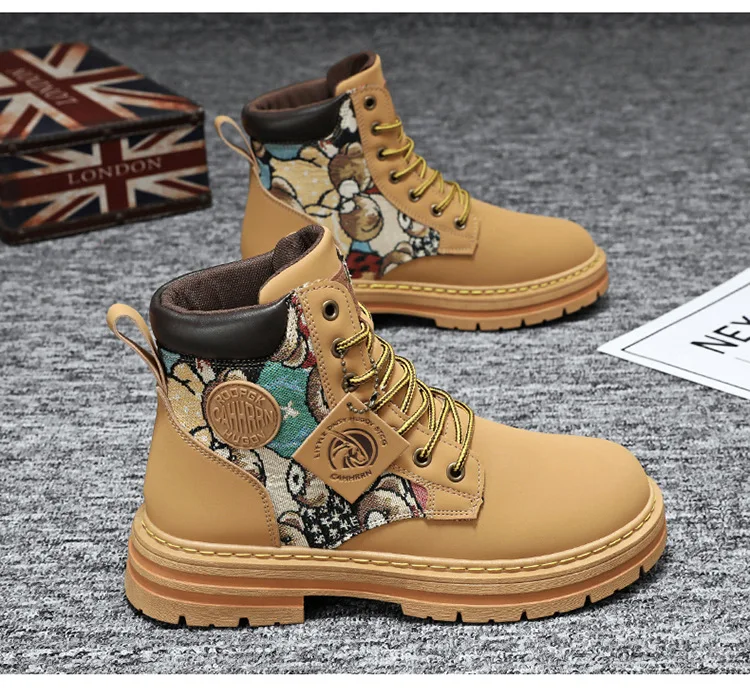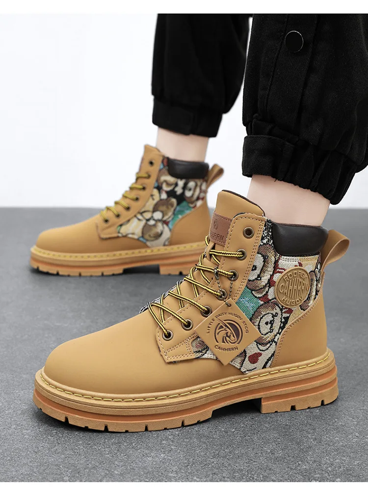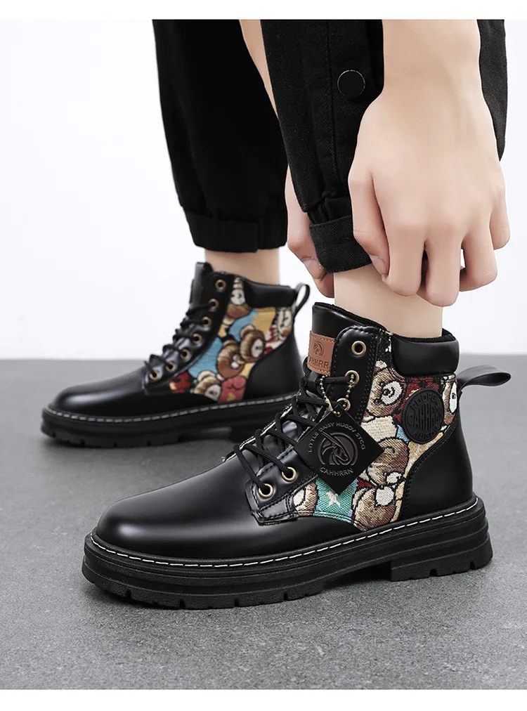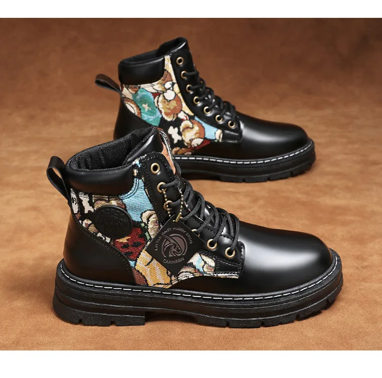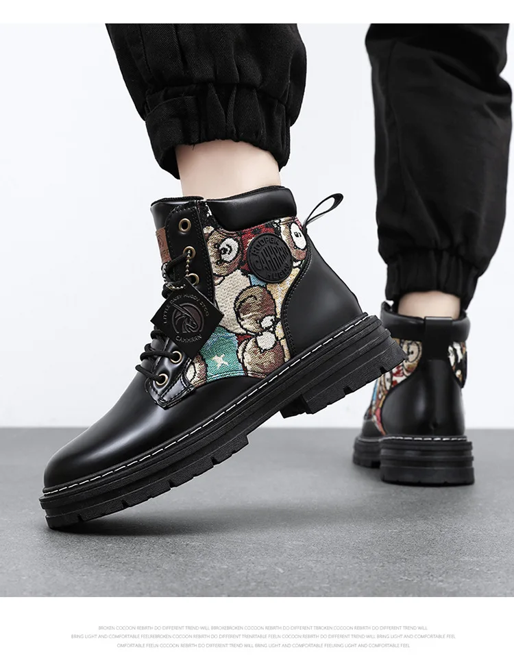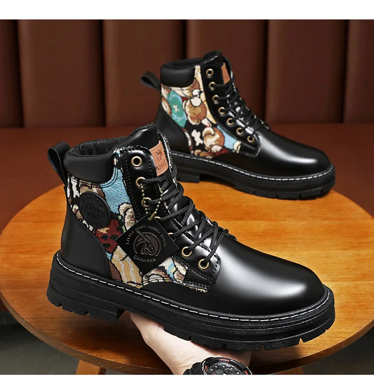 New Men's Boots Designer Luxury Men Working Boots High Tops Platform Leather Shoes for Men British style Motorcycle Botas Hombre