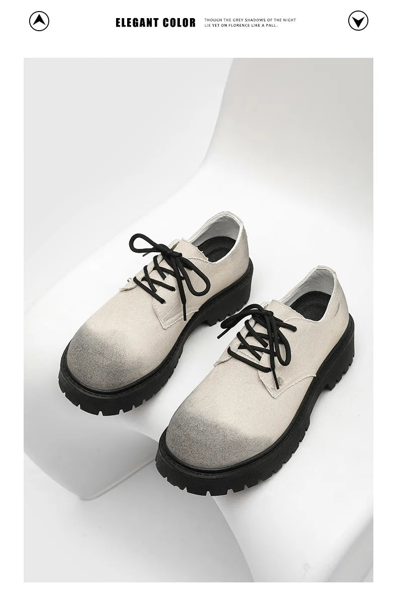 New Mens Derby Shoes British-Style Big Round-Toe Chunky Platform Sneakers Original Breathable Casual Shoes for Streetwear &Daily