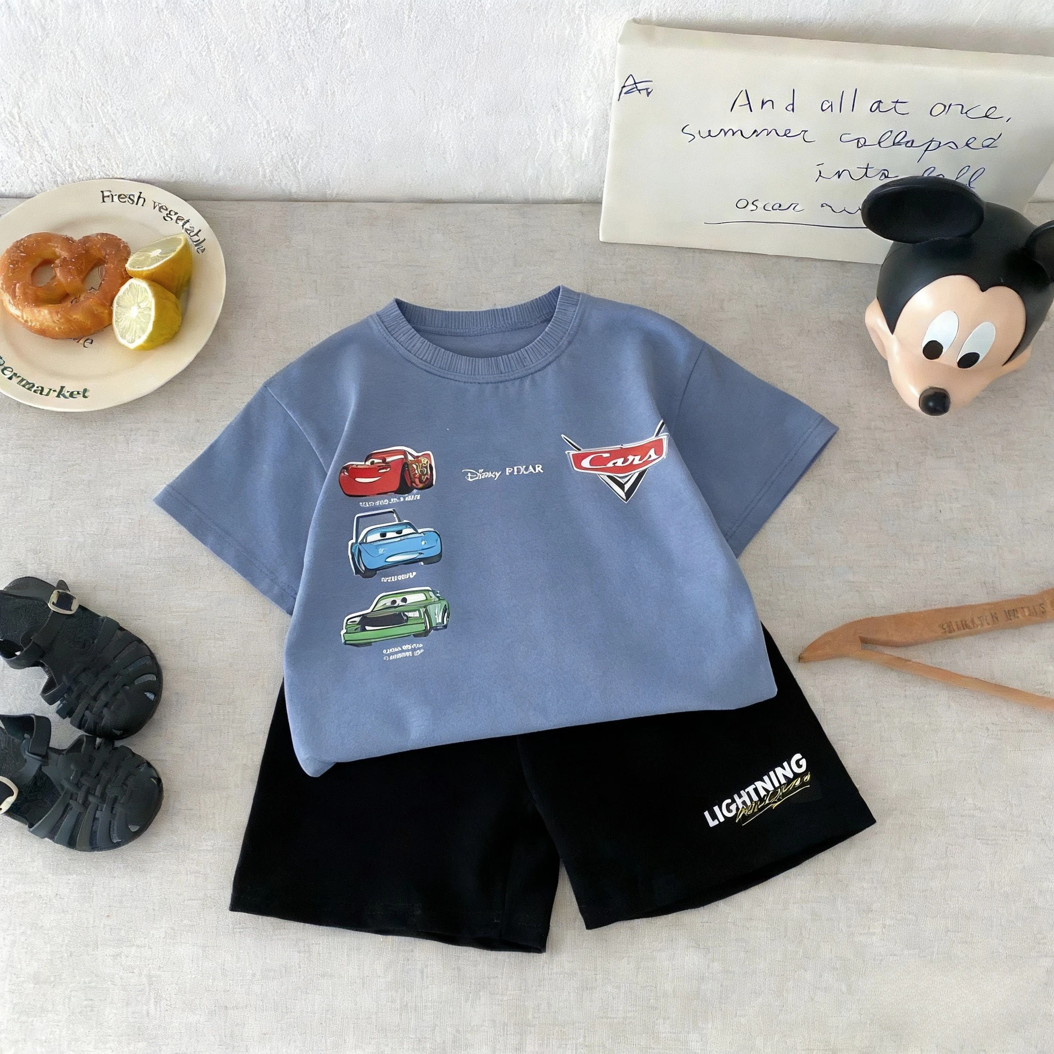 New Style Cartoon Car Fashion Boys T-shirt Shorts Two Piece Set Children's Summer Clothes Casual Versatile Kids Short Sleeve Set