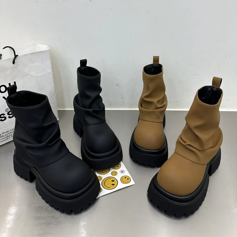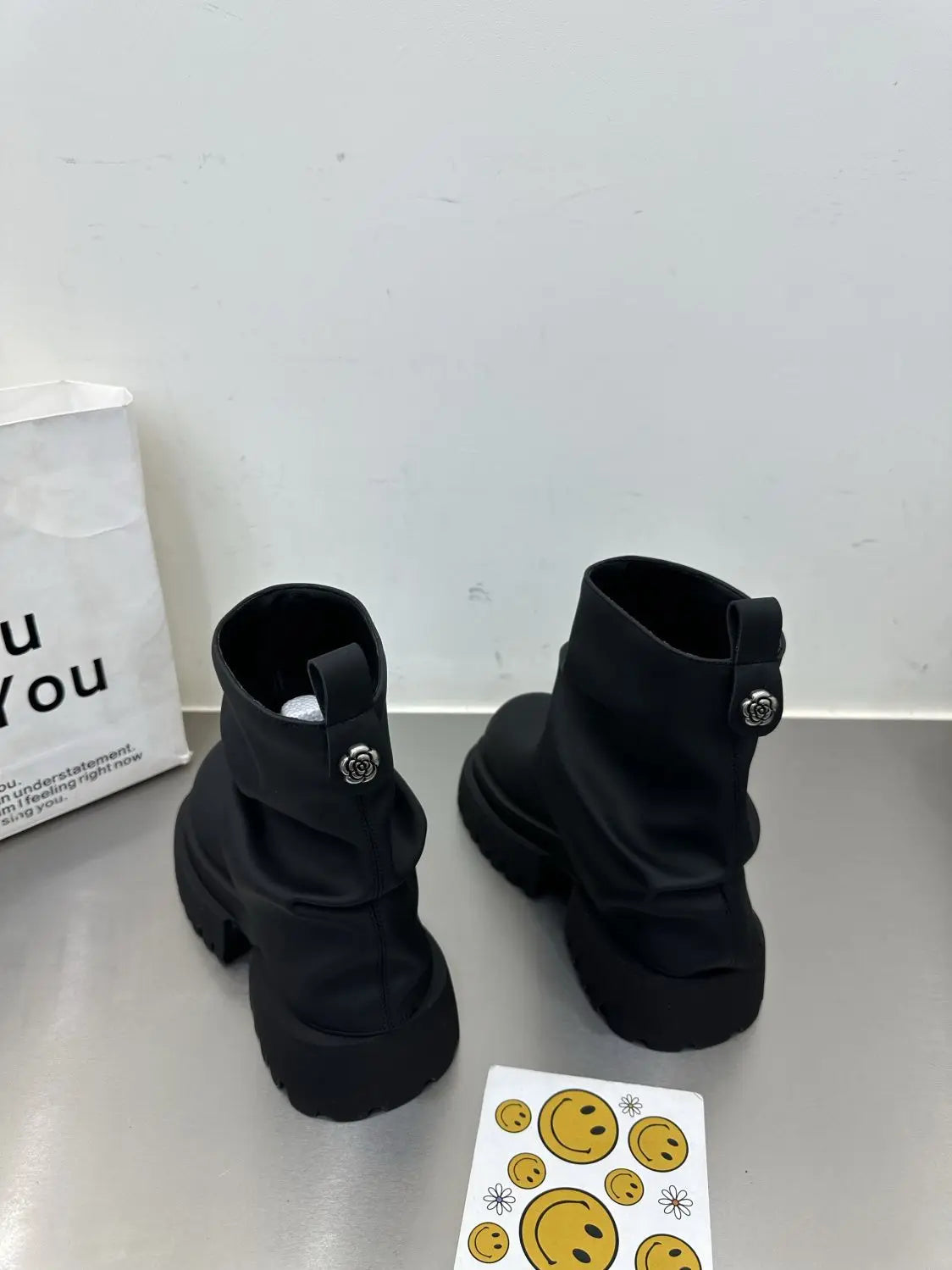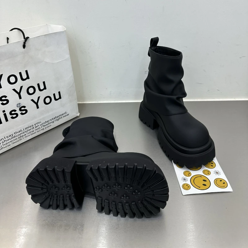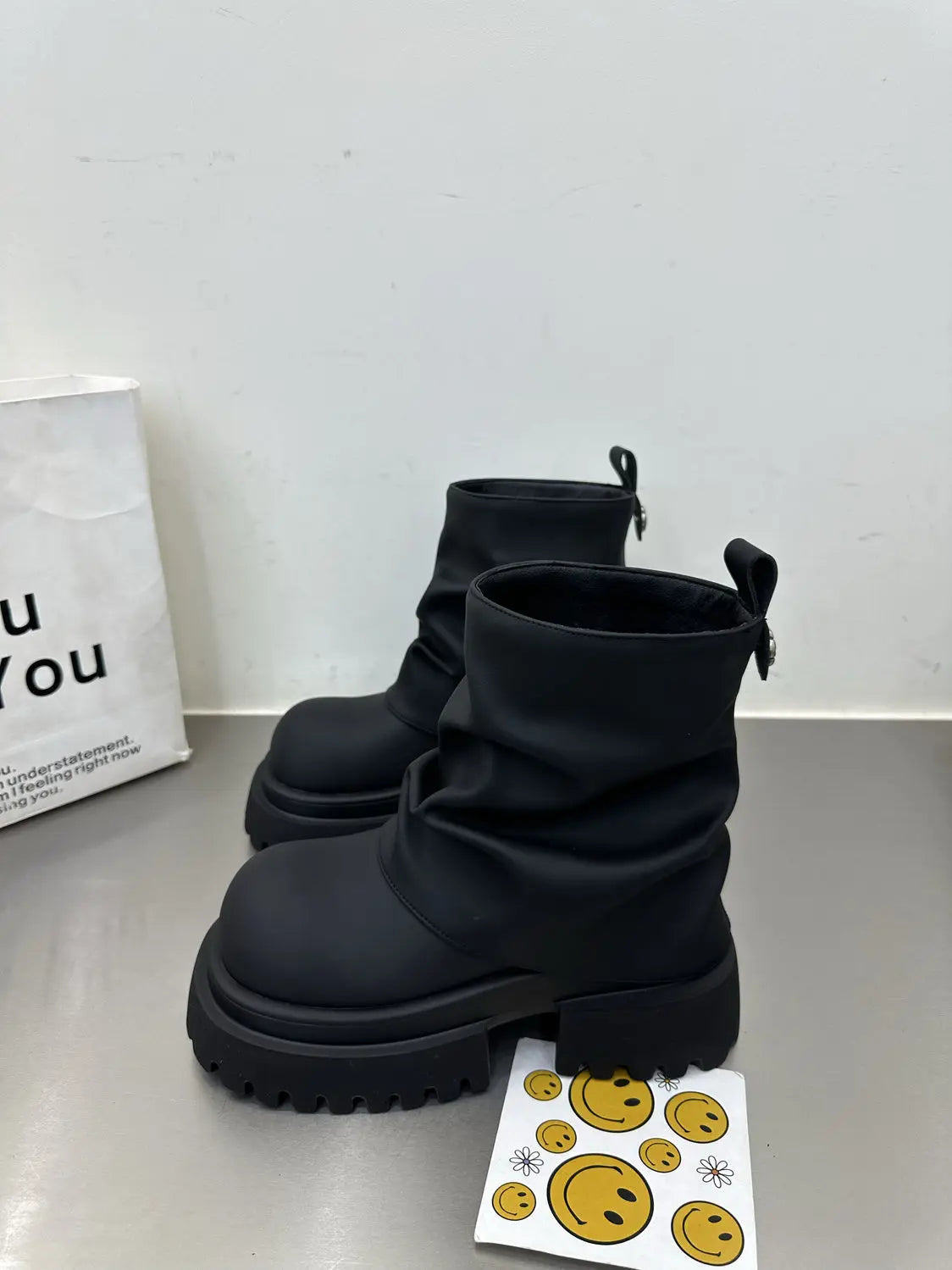 New Style Work Boots for Spring and Autumn Non-slip Wear-resistant Women Short Boots Thick-soled Zippered Mid-tube Women's Boots