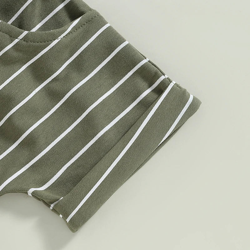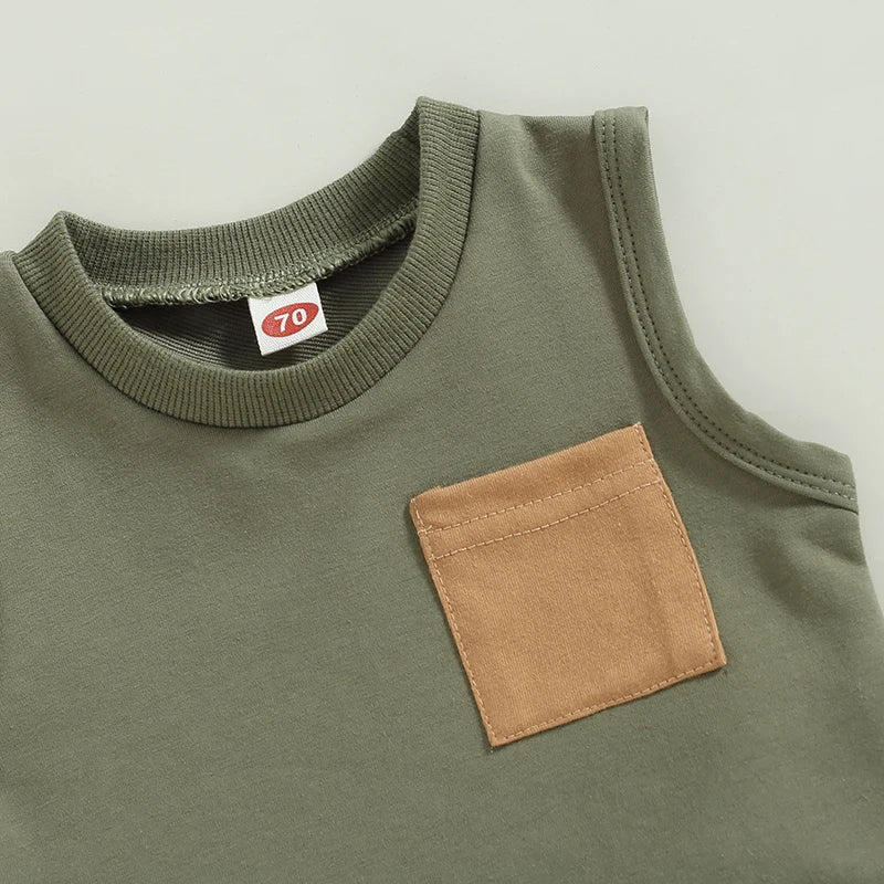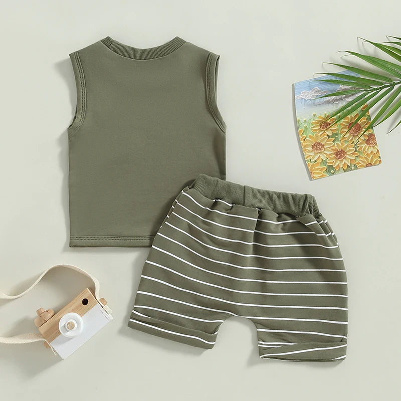 2Pcs Baby Boy Summer Outfits, Sleeveless Pocket Tank Tops + Striped Pocket Shorts SetFeatures: