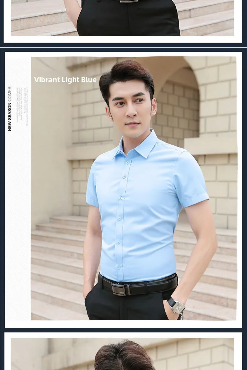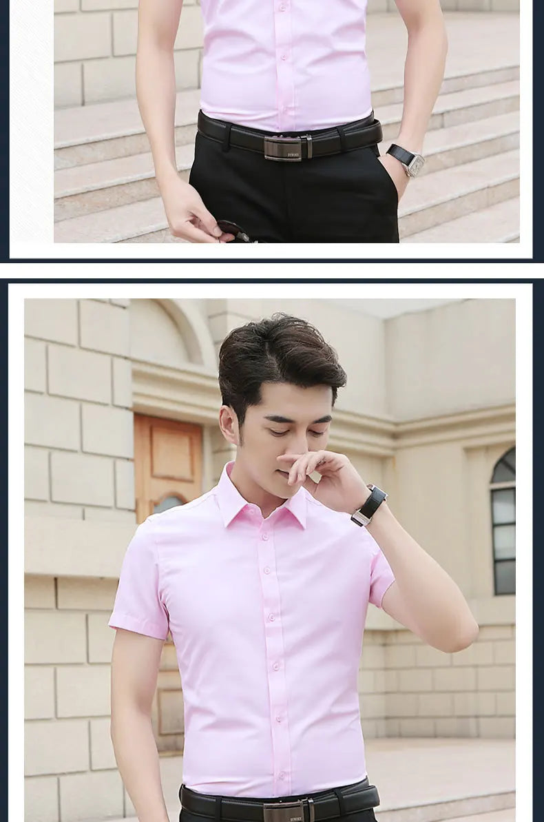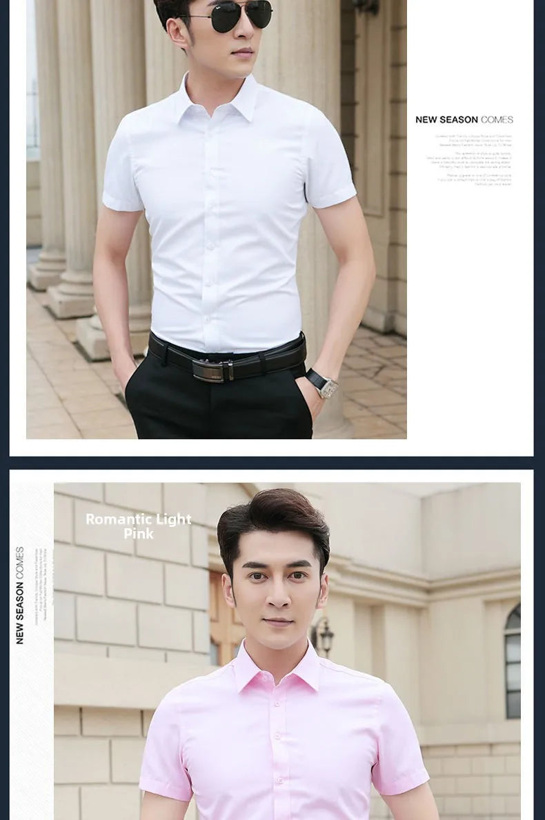 Professional Mens Short Sleeve Shirt White Business Casual Slim Fit Japanese Retro Style Polyester Fiber Printed Shirt for Youth