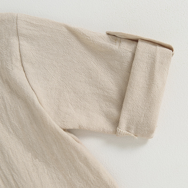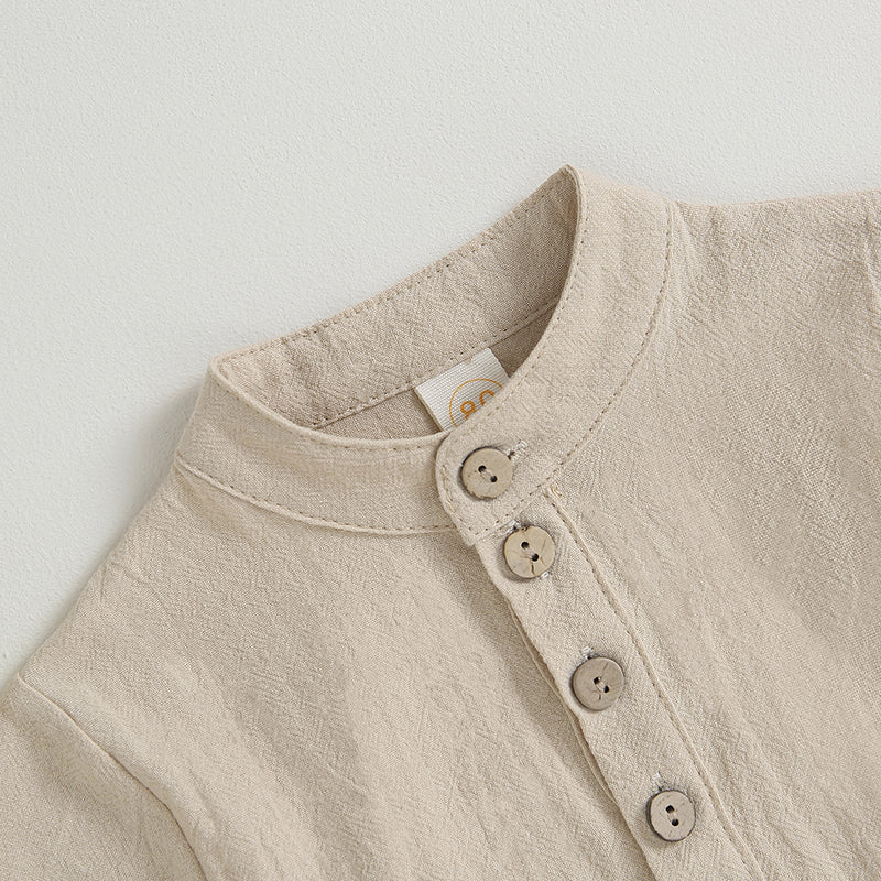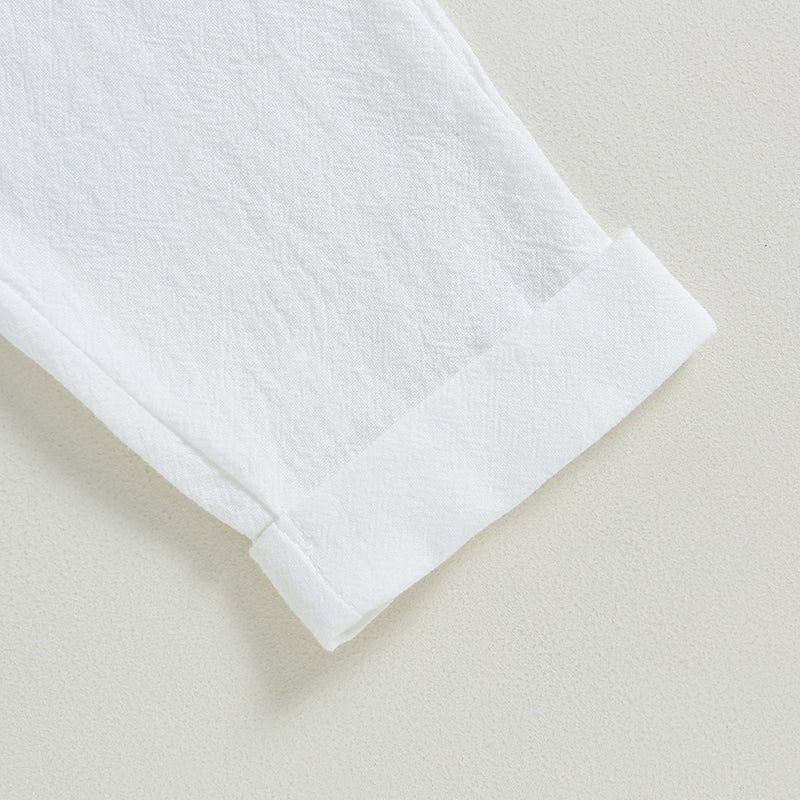 Kids Boys Summer Outfits Solid Color Buttons Short Sleeve Shirts and Elastic Waist Long Pants 2Pcs Clothes SetSize chart:(cm/inch)