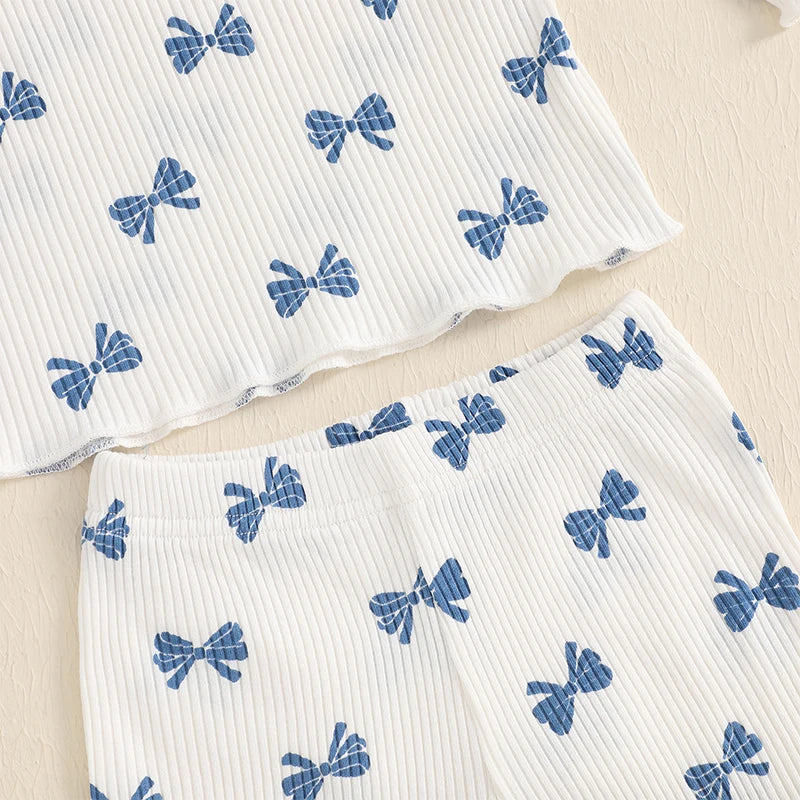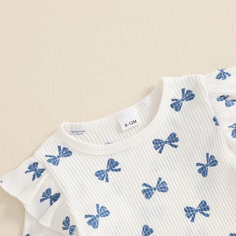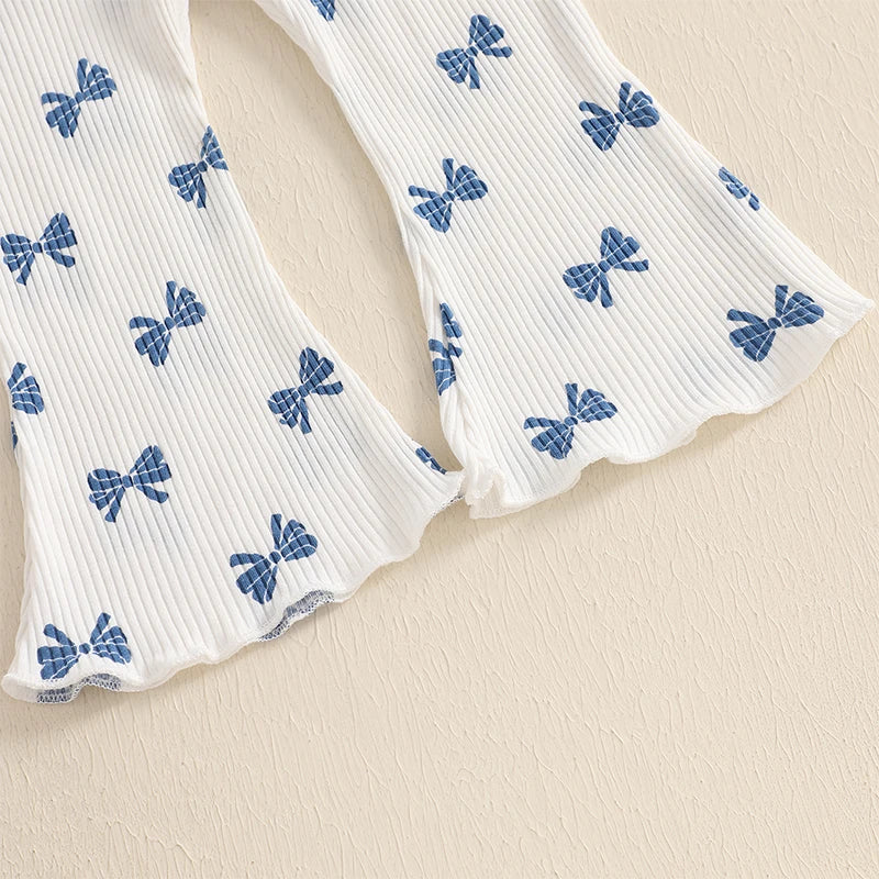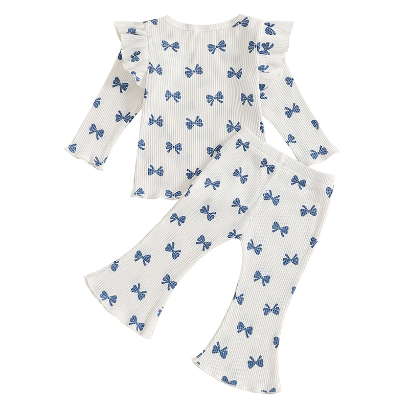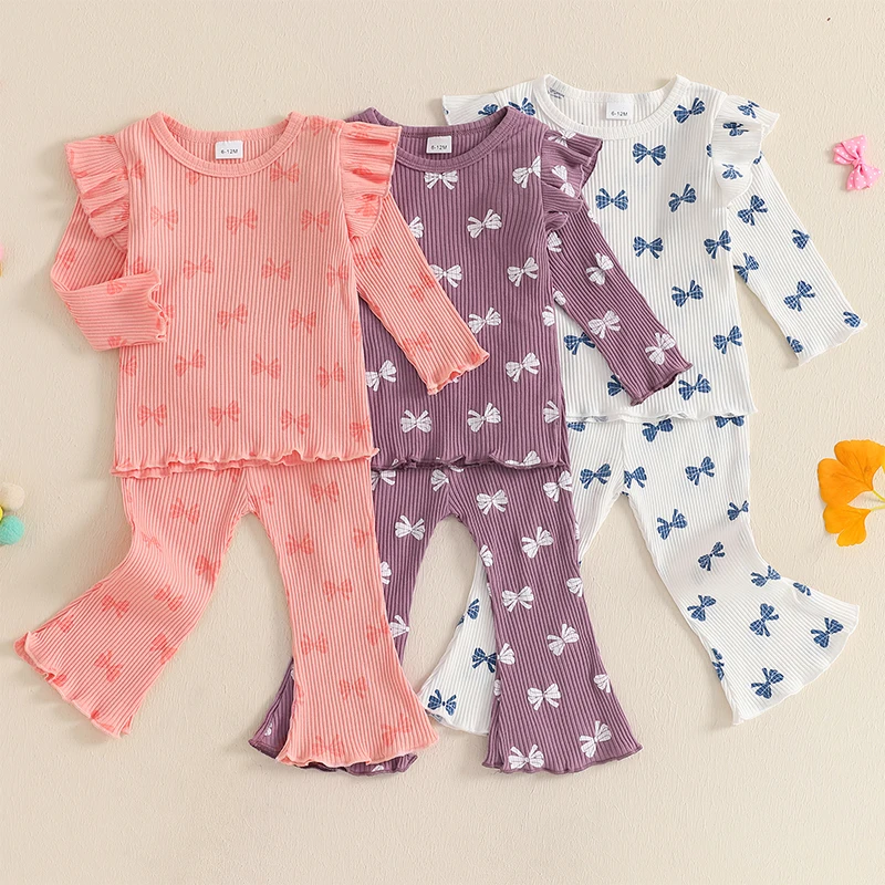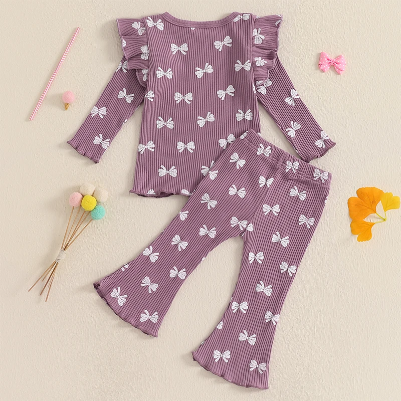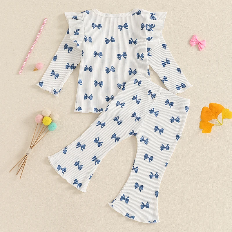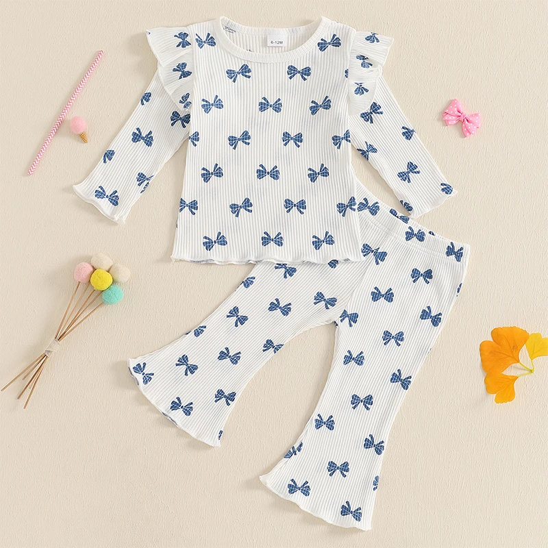 Pudcoco Kid Infant Baby Girls Pants Set, Bow Print Long Sleeve Crew Neck T-shirt with Flare Pants Fall Outfit 6M-4T