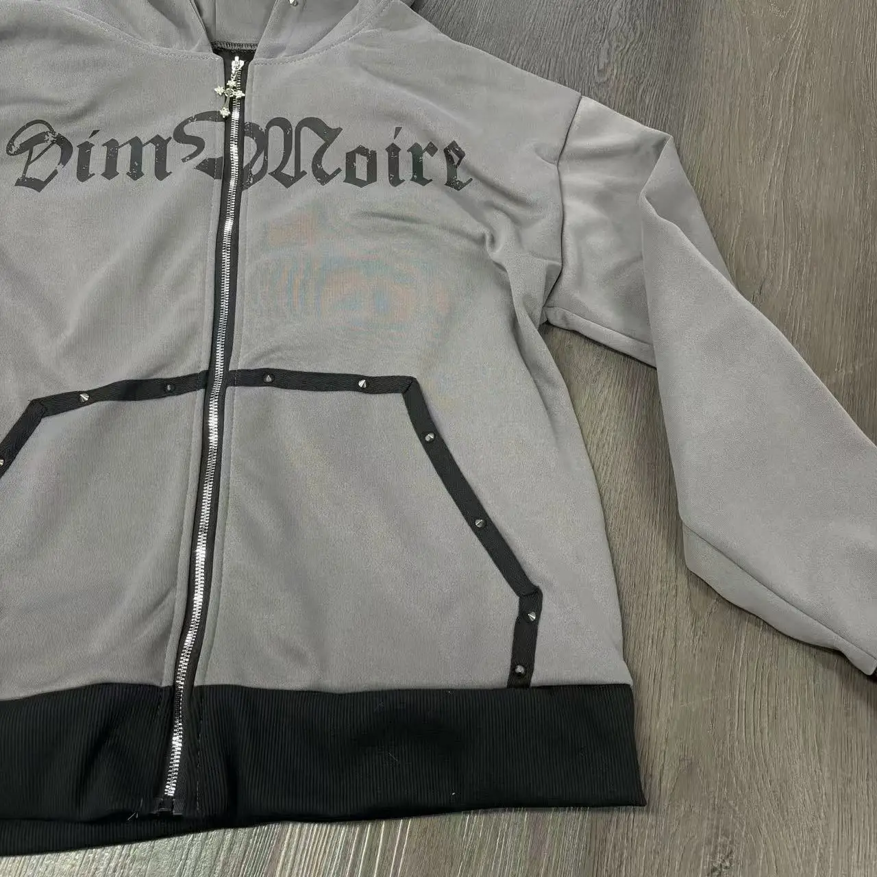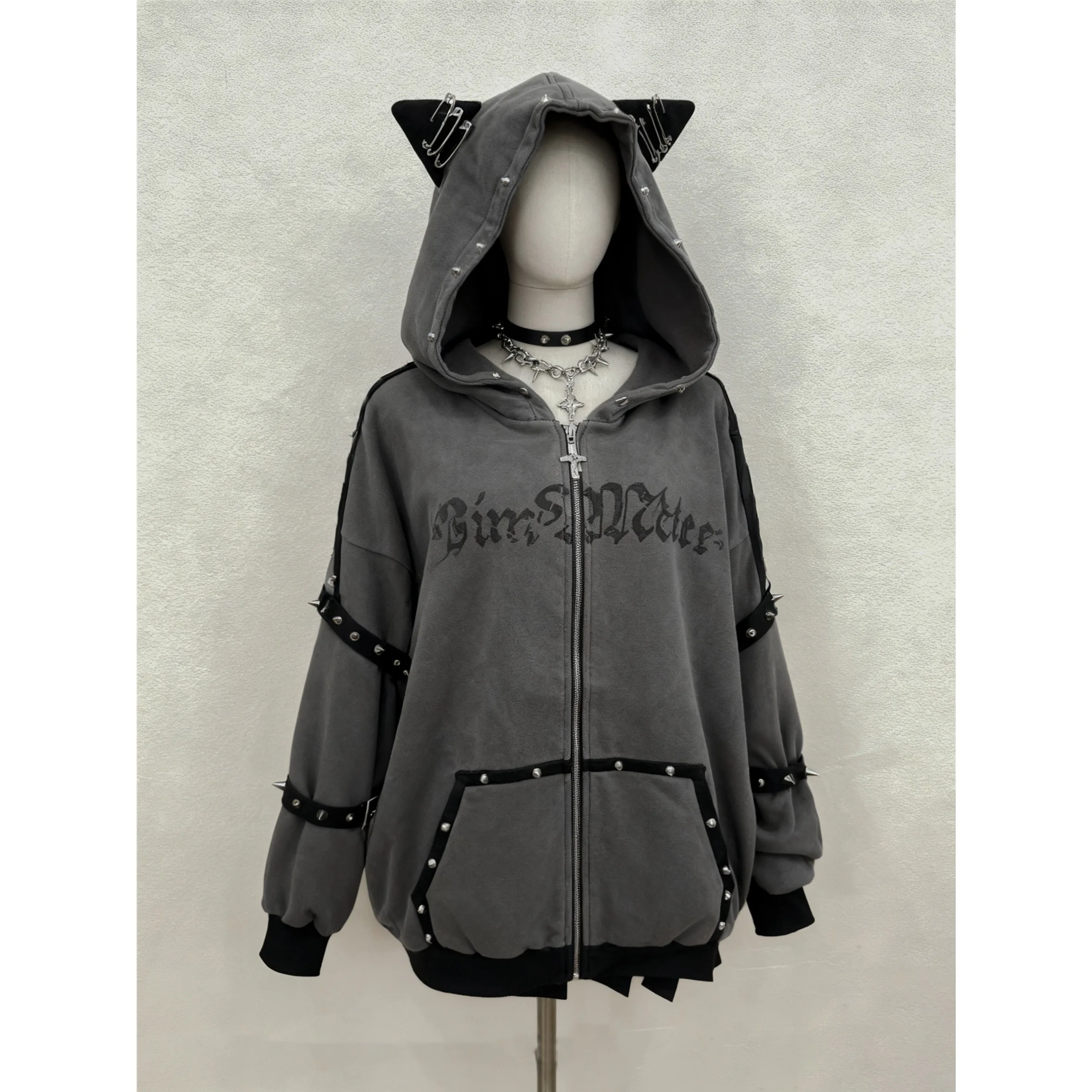 Punk Rivet Gothic Printed Hoodies Women Subculture American Vintage Jackets and Coats Outwear Chic Retro Harajuku Japanese Tops