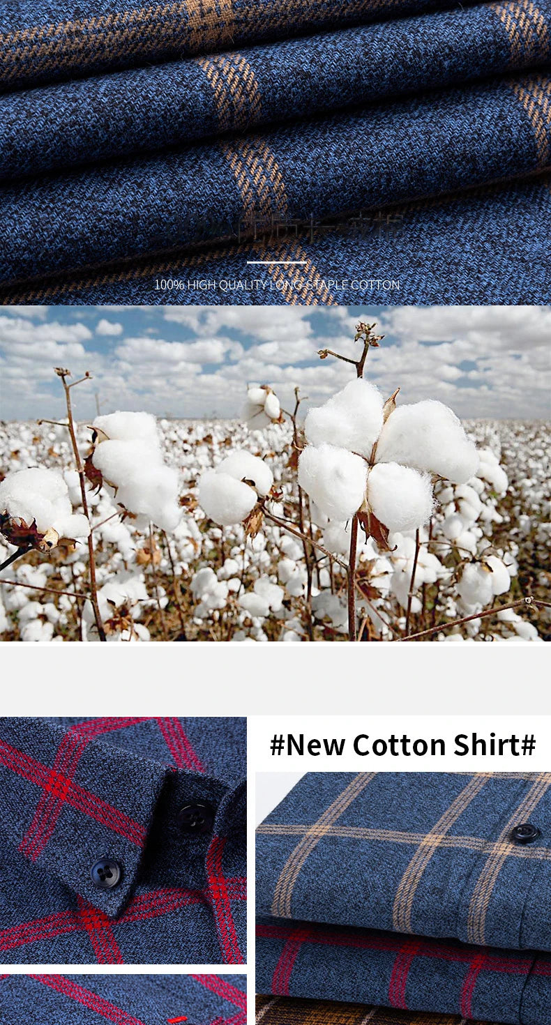 Pure Cotton Men's Plaid Shirt Long Sleeve Regular Fit Men Casual Oversized Shirt Leisure Autumn Male Blouse New Plus Size