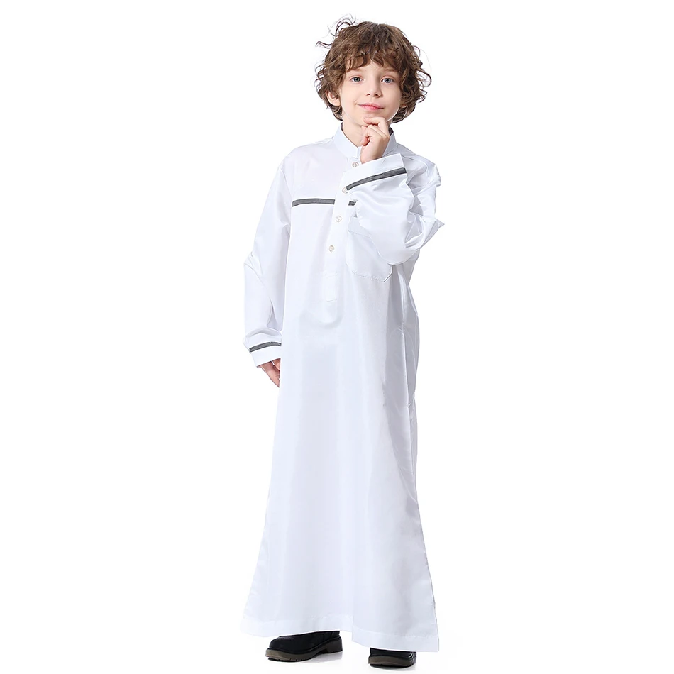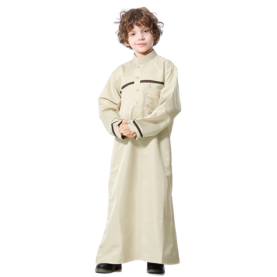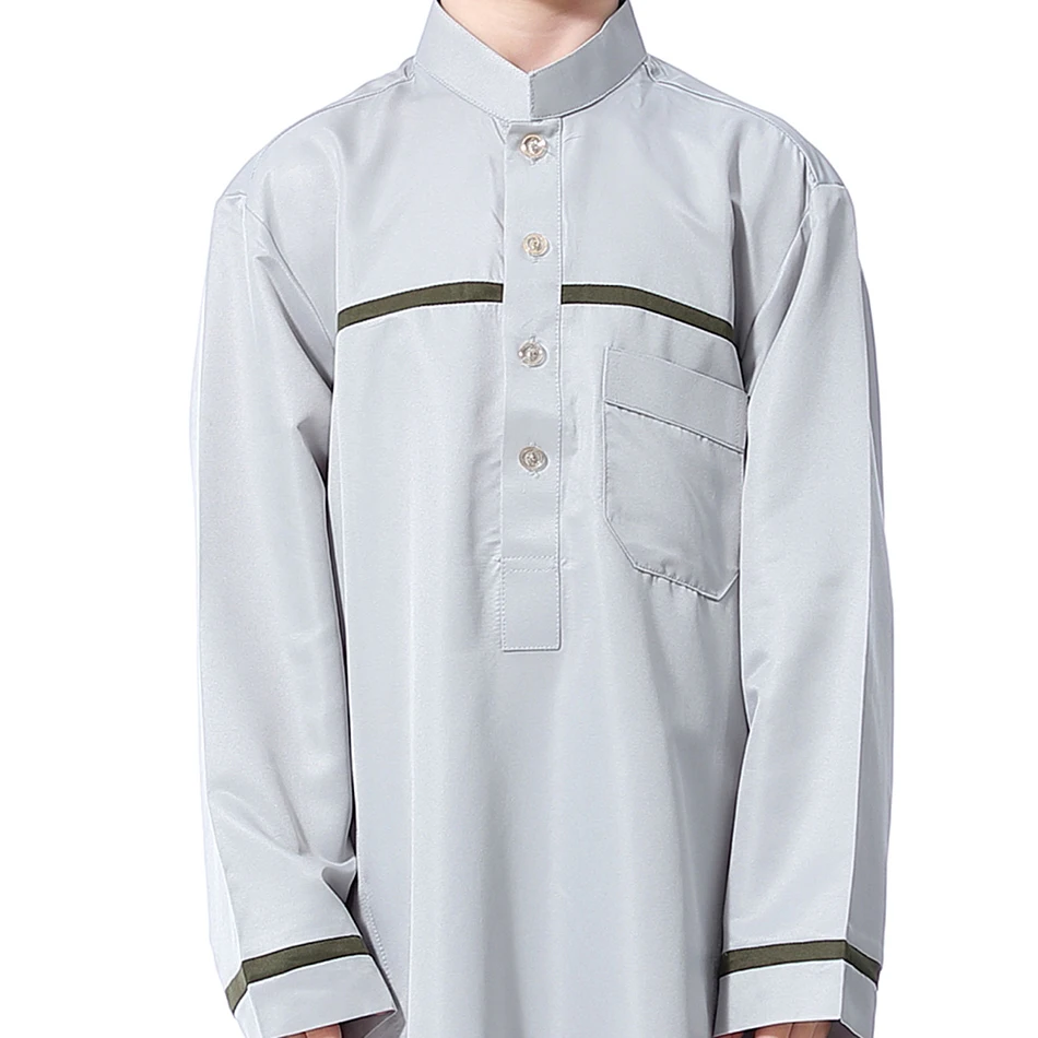 Ramadan Eid Islamic Boys Long Robe Children Traditional Arab Thobe Thawb Caftan Solid Color Long Sleeve Stand Collar with Pocket