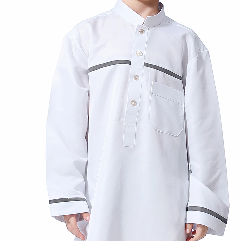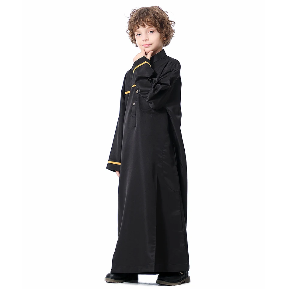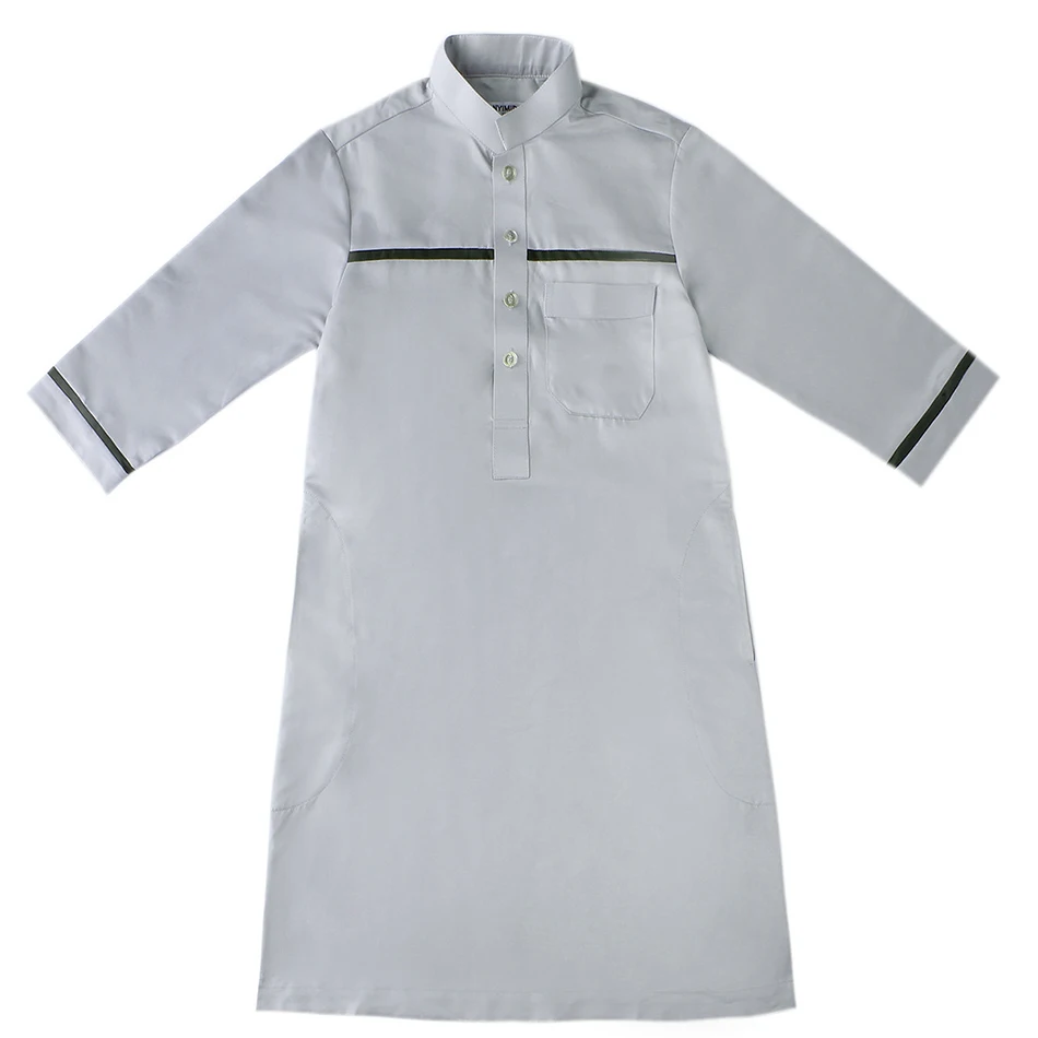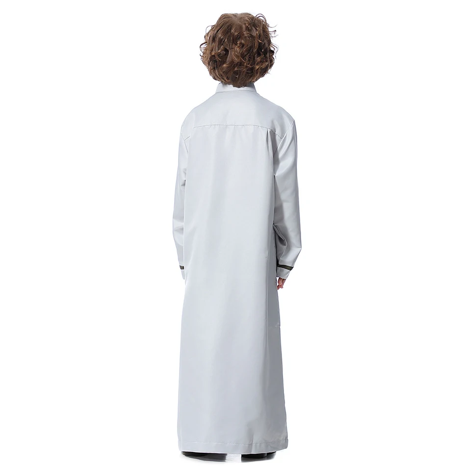 Name: Ramadan Eid Islamic Boys Long Robe Children Traditional Arab Thobe Thawb Caftan Solid Color Long Sleeve Stand Collar with Pocket Size:110-120-130-140-150-160 Gender:Boy Color: Grey, White, Yellow, Black Material:Polyester Packing:OPP Bag Season:Winter Package included:1*Piece set