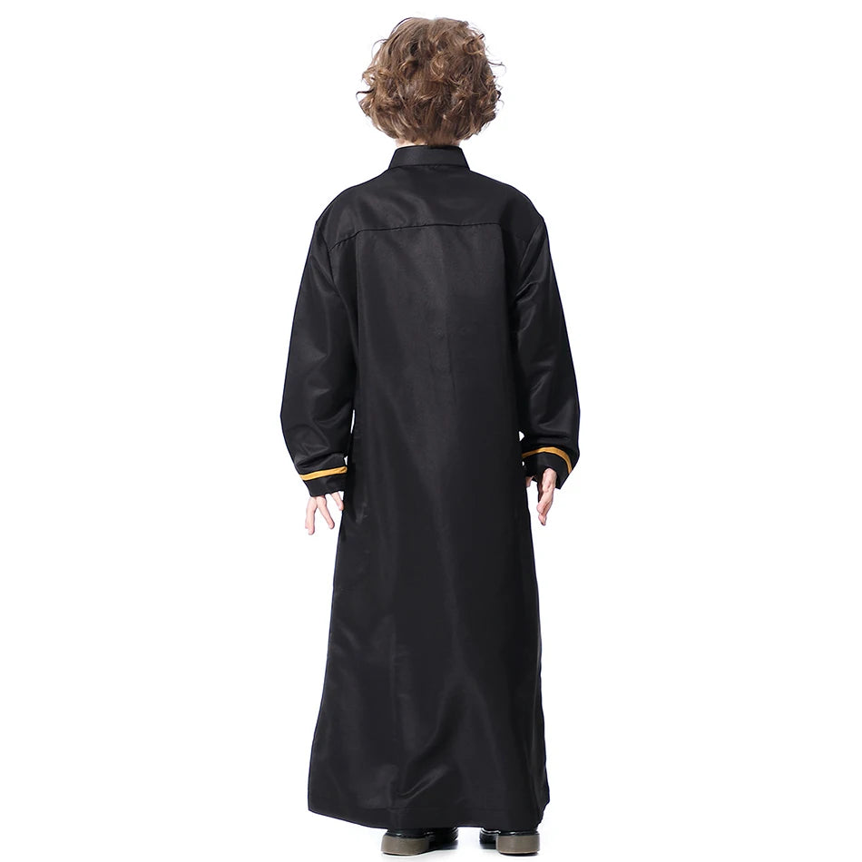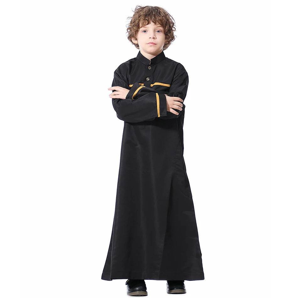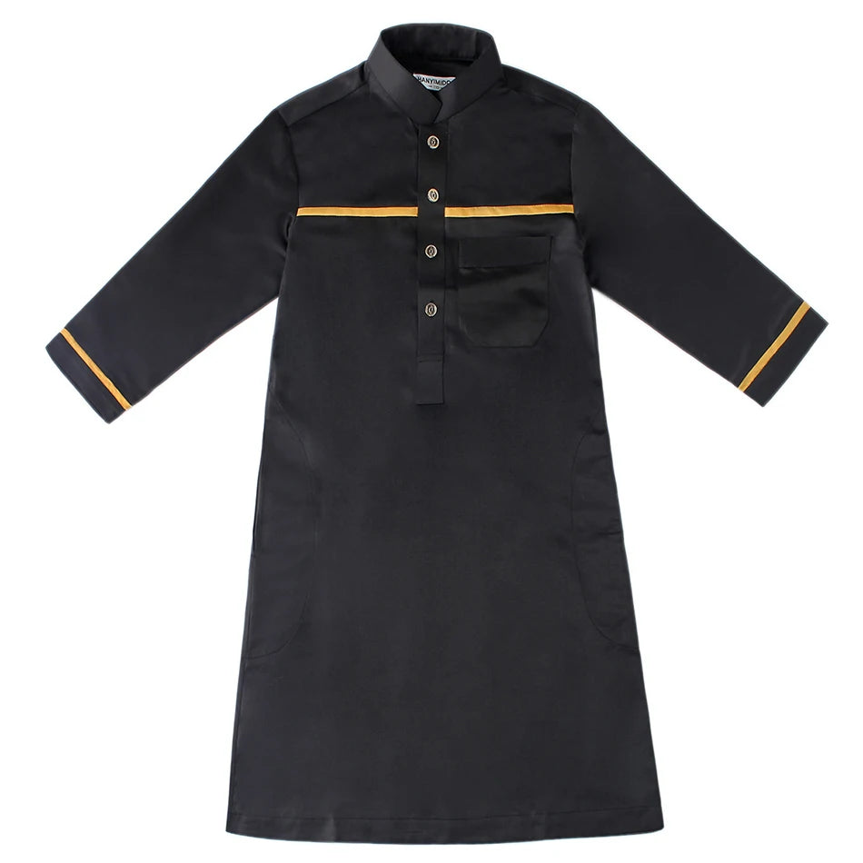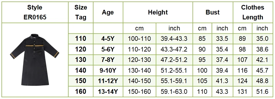 Name: Ramadan Eid Islamic Boys Long Robe Children Traditional Arab Thobe Thawb Caftan Solid Color Long Sleeve Stand Collar with Pocket Size:110-120-130-140-150-160 Gender:Boy Color: Grey, White, Yellow, Black Material:Polyester Packing:OPP Bag Season:Winter Package included:1*Piece set