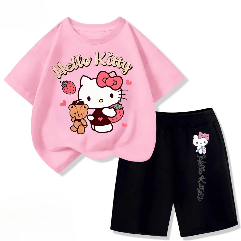 Sanrio Children's T-shirts Sets Girls Summer Short Sleeve Shorts Two Piece Suit Kids Outfits Breathable Sport Clothes Set
