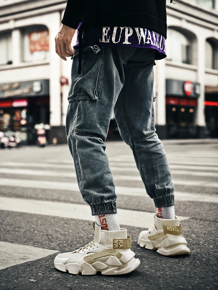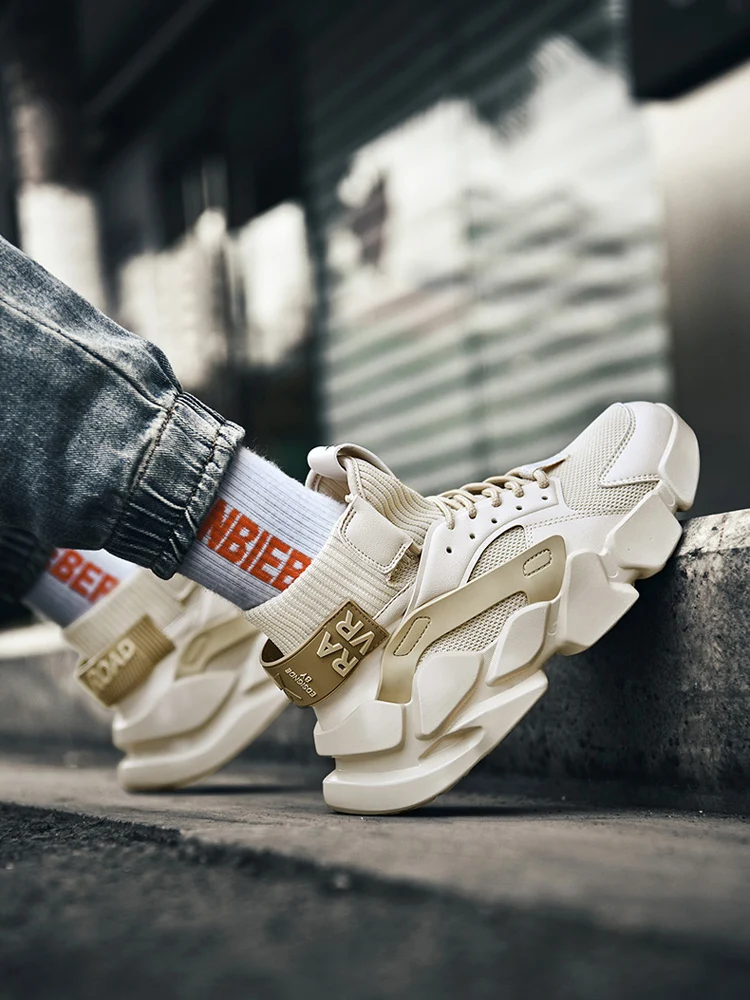 Shoes for Men New High-top Beige Men Sneakers Chunky Men Shoes Heighten Fashion Casual Plus Size Damping Tennis Shoes Zapatillas