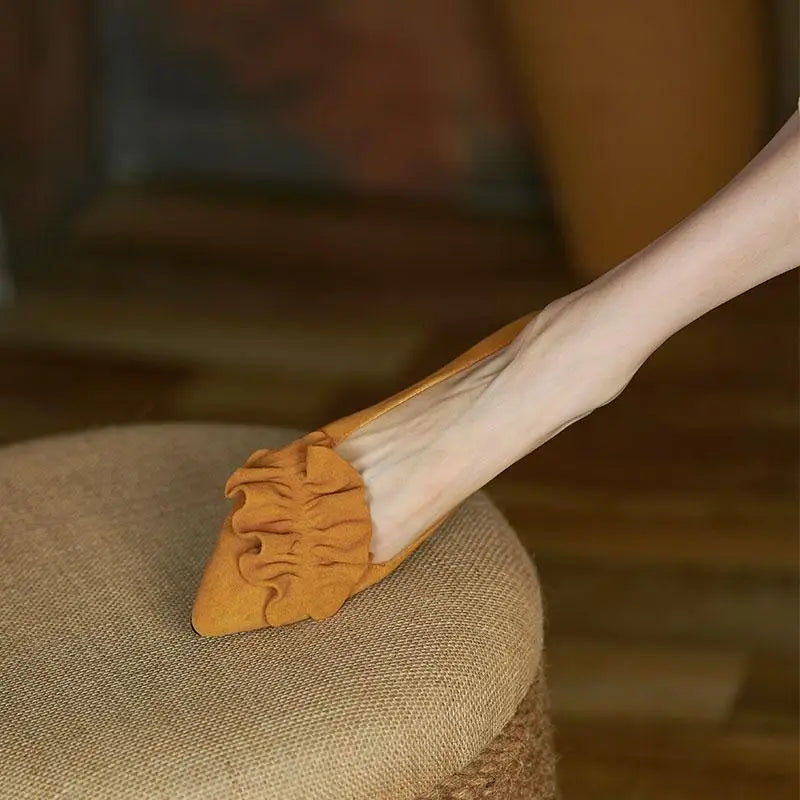 Shoes for Woman 2025 Office Women's Summer Footwear Pointed Toe Yellow Low Heel Elegant Fashion Trend on Promotion High Quality