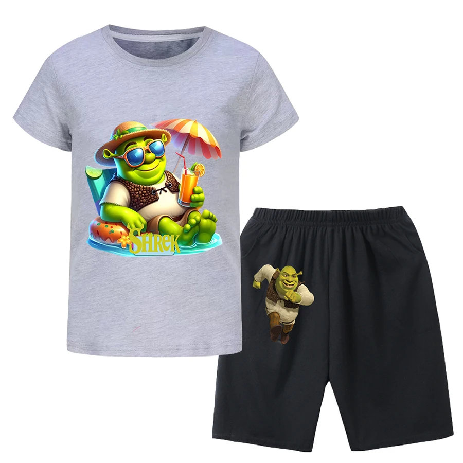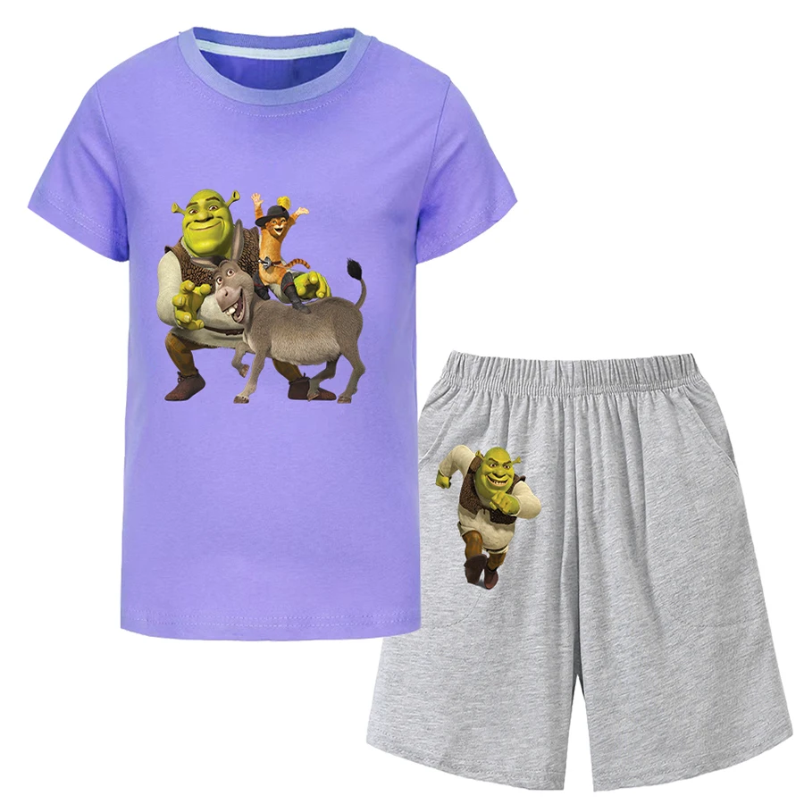 Shrek Child Tracksuit Blouse Short Sleeve Family Matching Clothes Sets for Baby Set for Children From 6 To 12 Years Old Summer