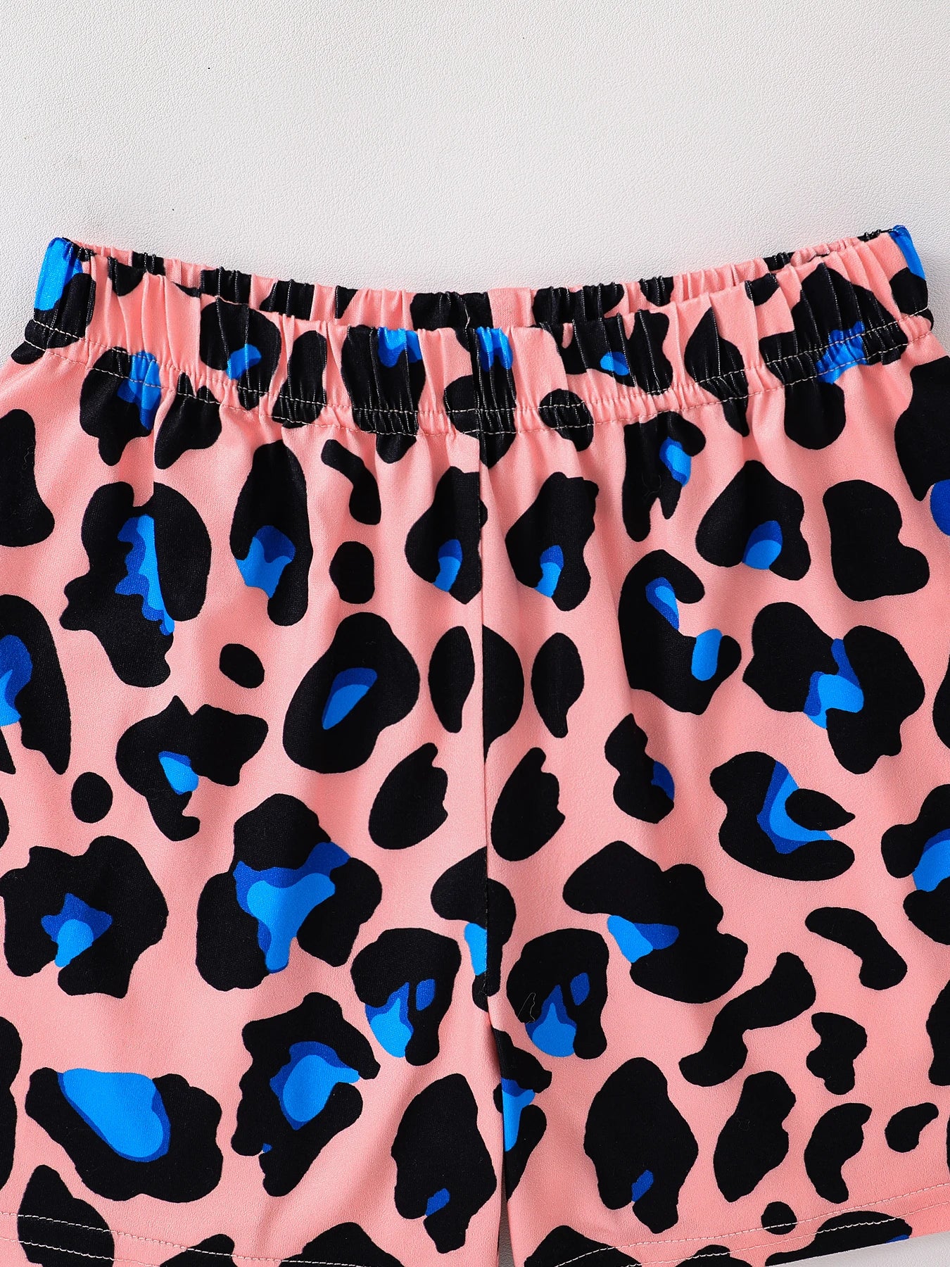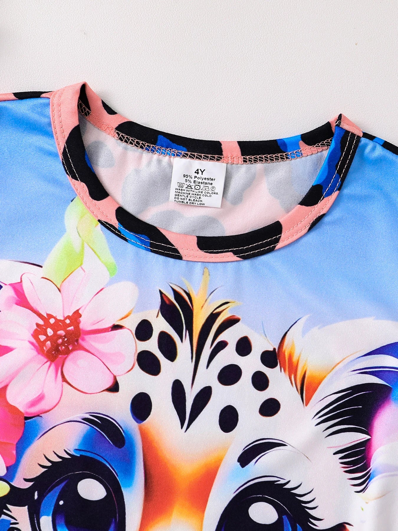 Summer 2-piece set of cute cartoon leopard casual children's clothing for girls, mixed color 4-8Y thin, cool and breathable