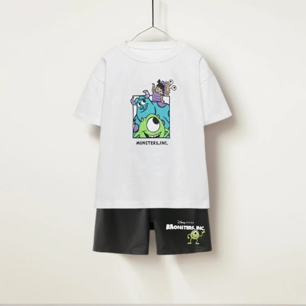 Summer Baby Children's Home Cloth Sets Monsters Inc Print Kids Loose Leisure Sets Toddler Tees +Pants Sets Clothes Outdoor Sets