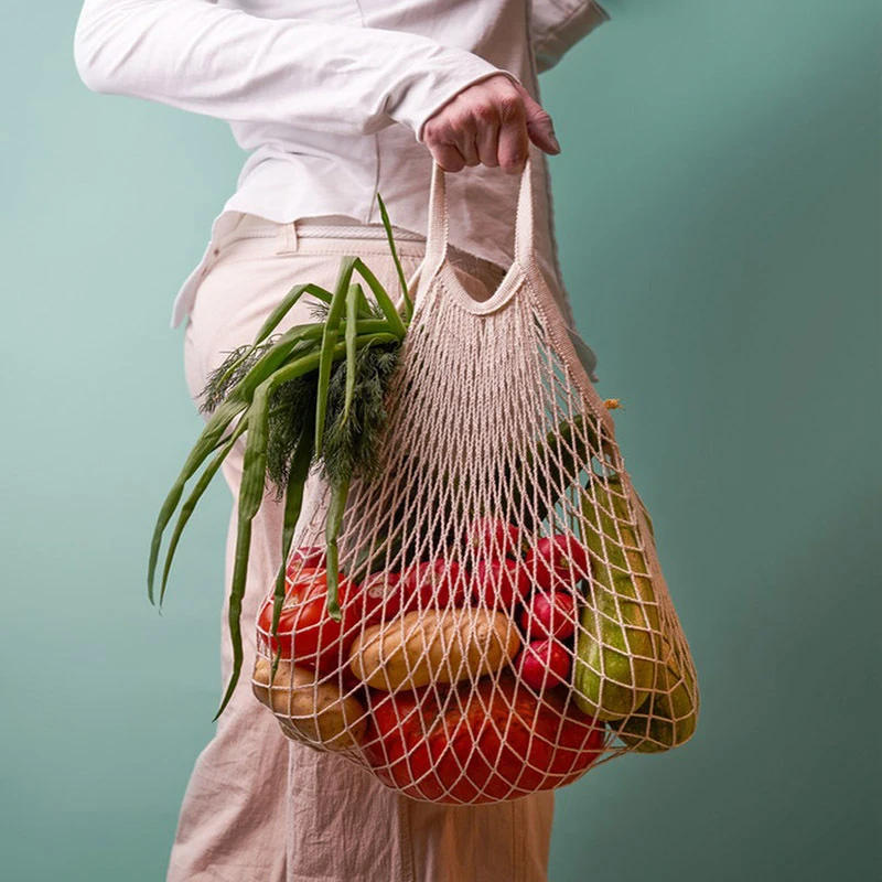 Summer Beach Bag Cotton Mesh Bag Reusable Fruit Bag Large Capacity Handheld