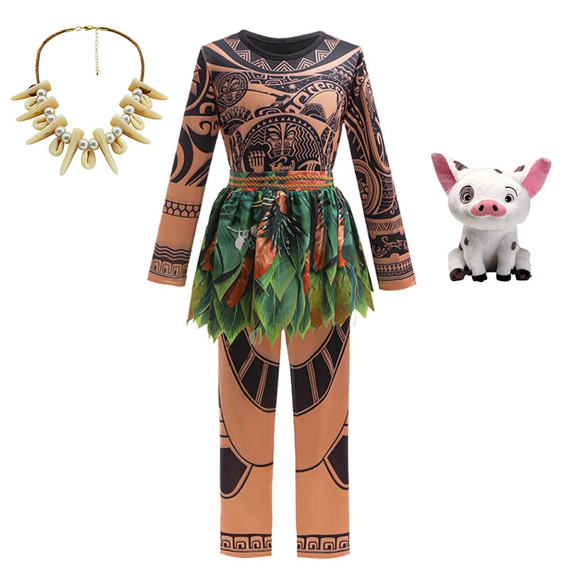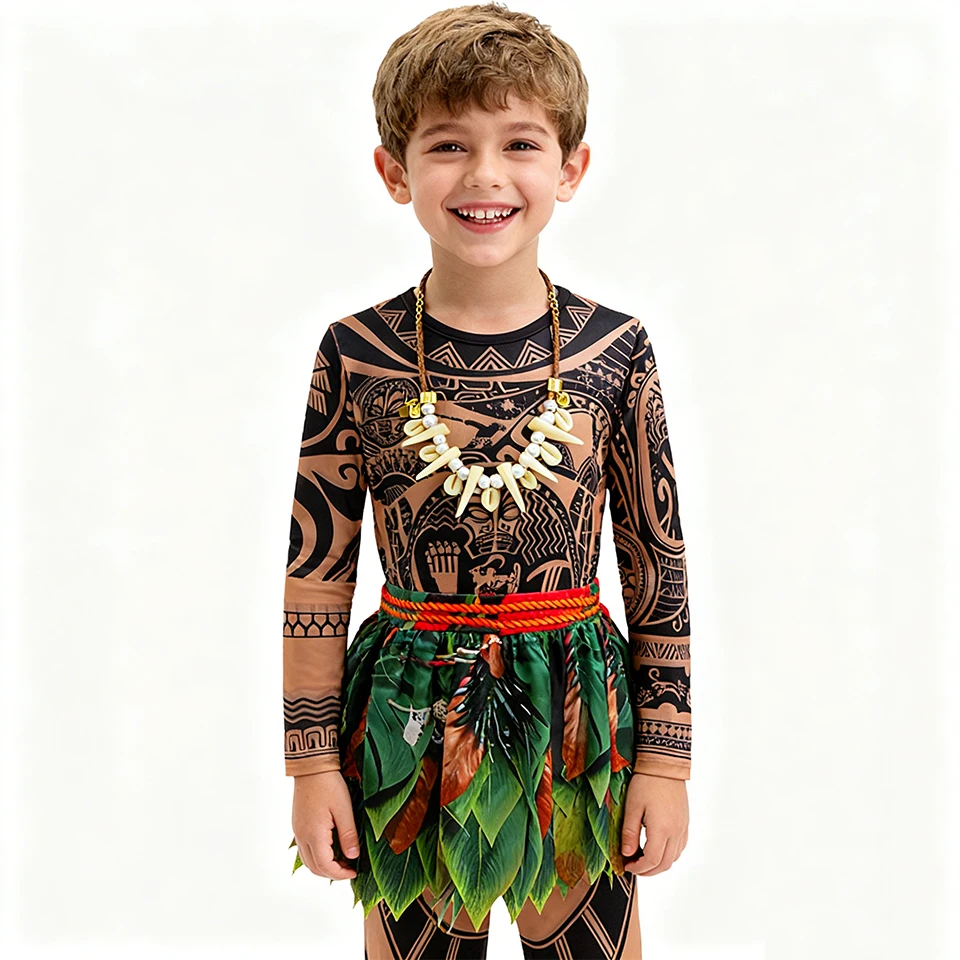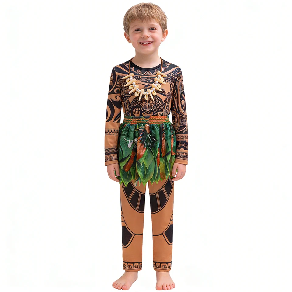 Cartoon Movie Kids Clothes Summer Fancy Girl Princess Moana Dress Halloween Cosplay Party Primitive Tribes Maui Boys Costume