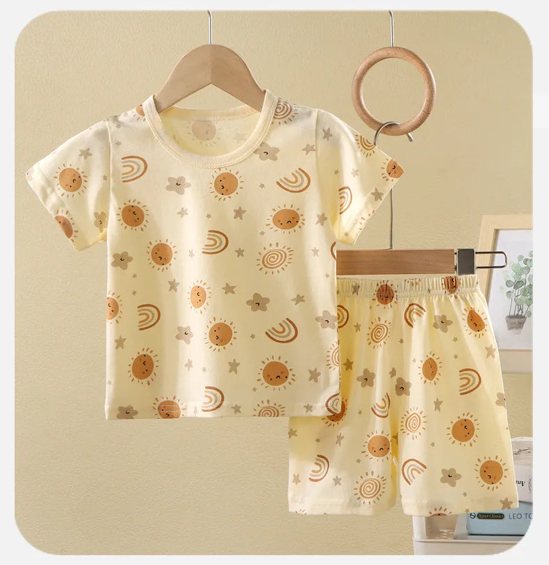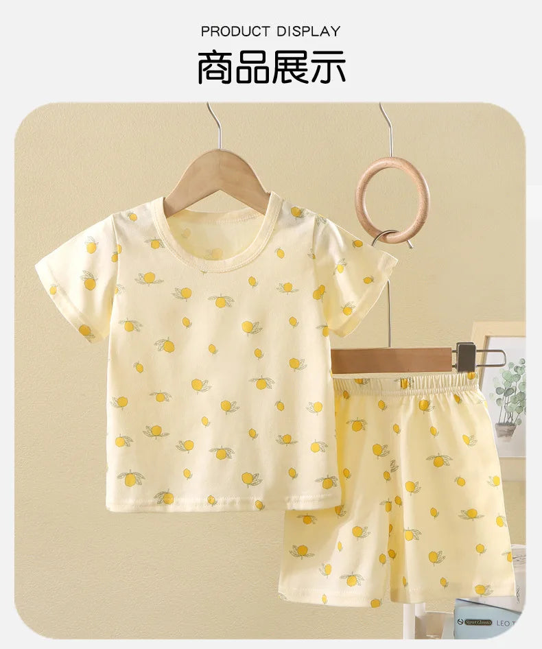 Summer Korean Nordic Style 0-5Y Kids Pajama Set Cotton Animal Print Pure Cotton Baby Girl Boy Sleeping Suit Casual Loose Clothes