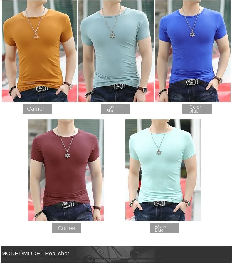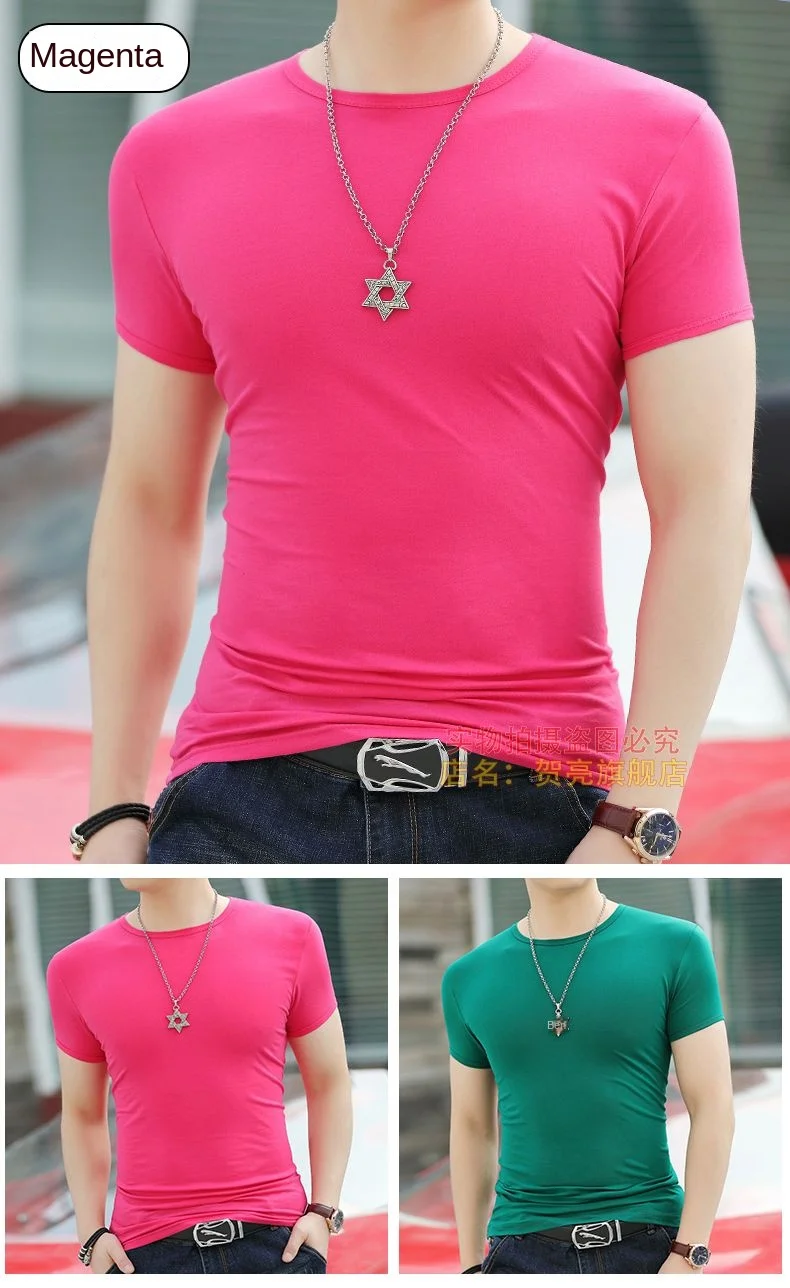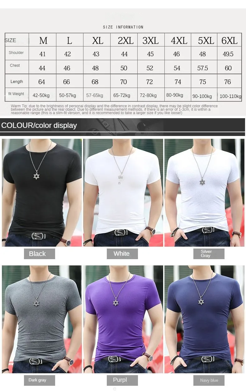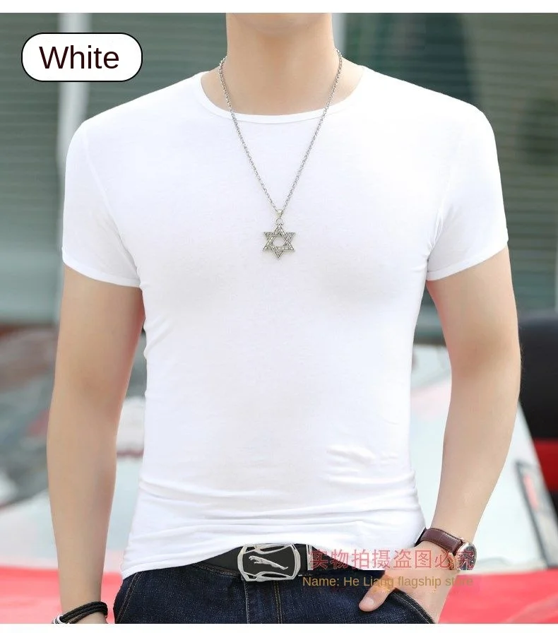 Summer Luxury Korean Men's Short Sleeve T-Shirt Fashion Round Neck Slim Elastic Tight-fitting General Tee Shirt for Men