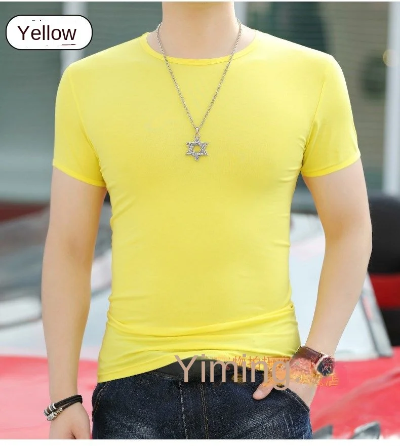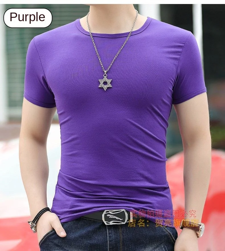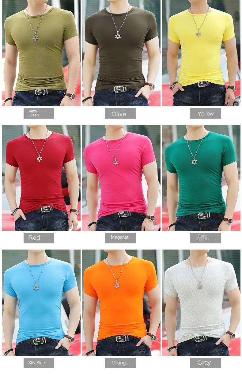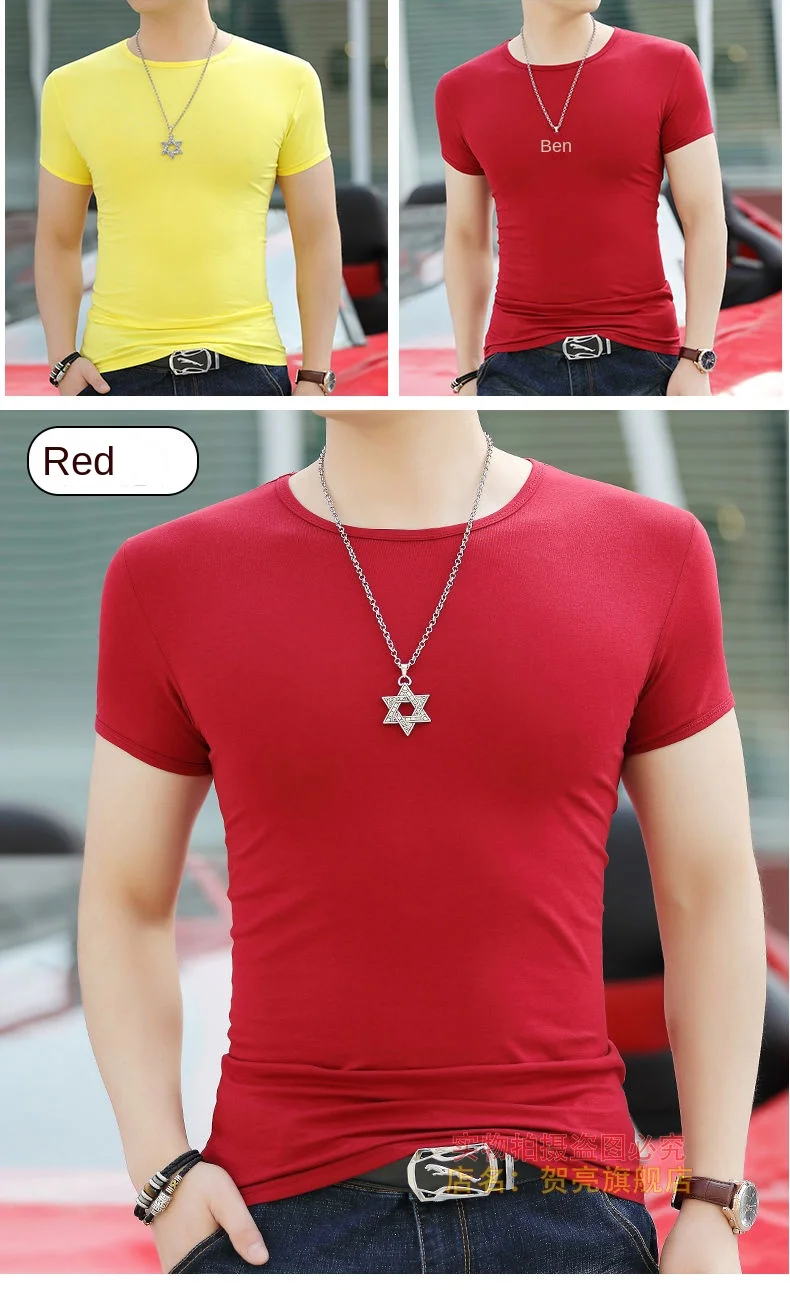 Summer Luxury Korean Men's Short Sleeve T-Shirt Fashion Round Neck Slim Elastic Tight-fitting General Tee Shirt for Men