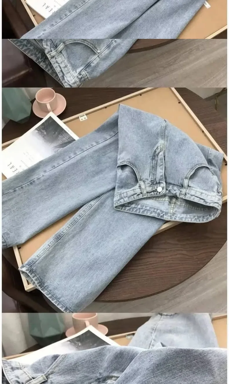 These jeans are designed in a trendy Korean style, making them a fashionable addition to any wardrobe.