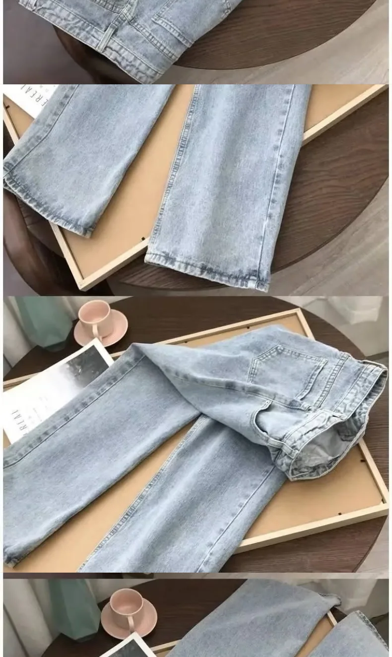 Summer plus Size Dad Jeans High Waist Loose Straight Leg Korean Sle Women's Wide Leg Long Pants Slimming Effect