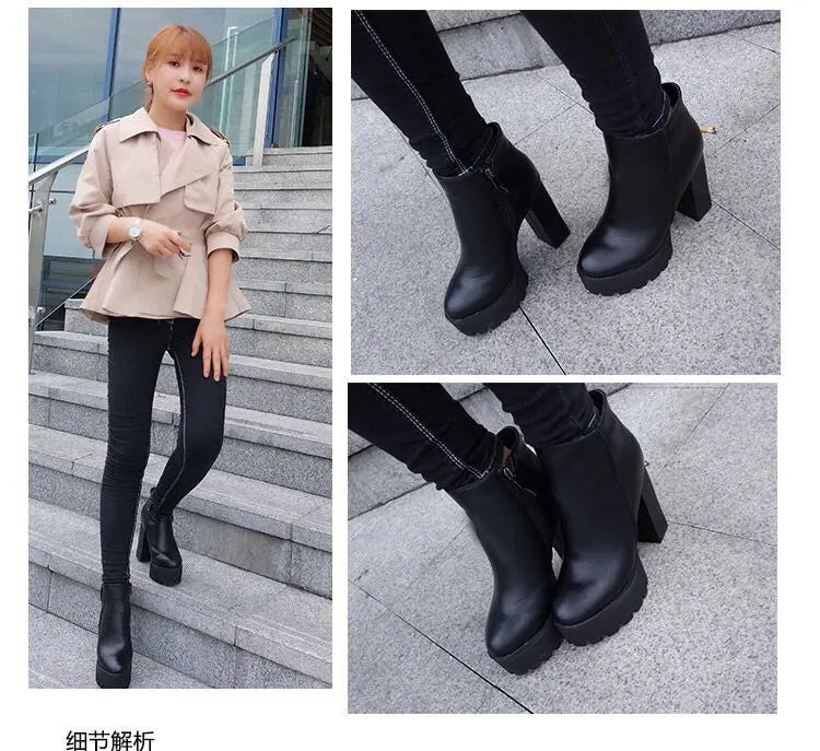 Super High Heel Boots High Heel Shoes Thick Heel Short Boots Autumn Winter 2025New Waterproof Platform Single Boot Women Boots