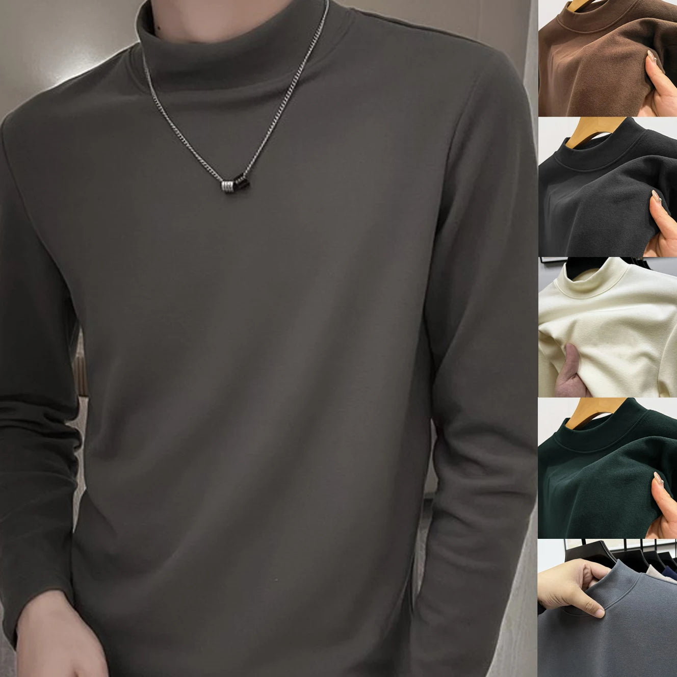 Thermal Underwear Tops Men Winter Clothes Thermal Shirt Autumn Men's Winter Tights High Neck Thin Slim Fit Long Sleeve T-shirt