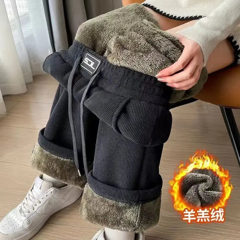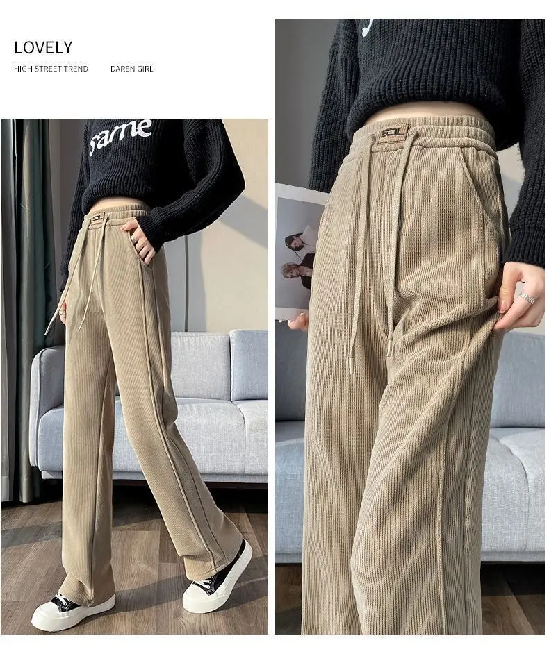 Thickened Fleece Wide Leg Pants Women's Autumn Winter New Style Northeast INS Casual Loose High Rise Straight Leg Trousers