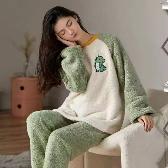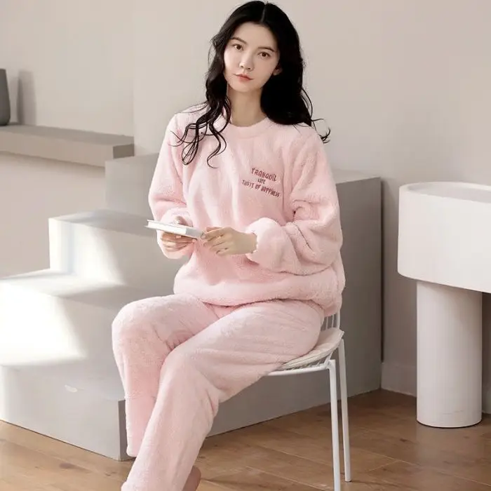 Crafted from thickened coral fleece, this set offers superior warmth and comfort, perfect for the chilly winter months.