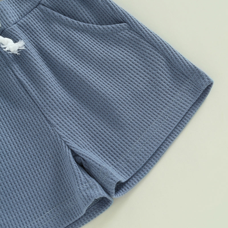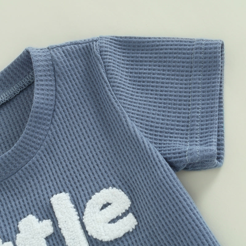 Tregren 0-3Y Toddler Boys Waffle Outfits Summer Short Sleeve Letter Print Tops + Drawstring Shorts Set Newborn Infant Clothes