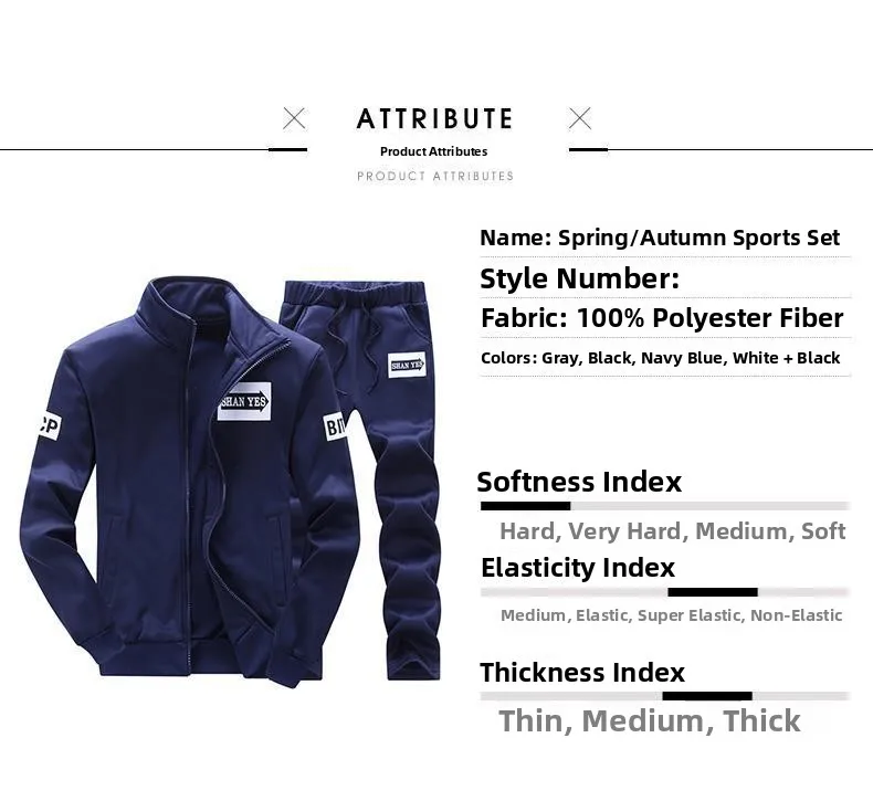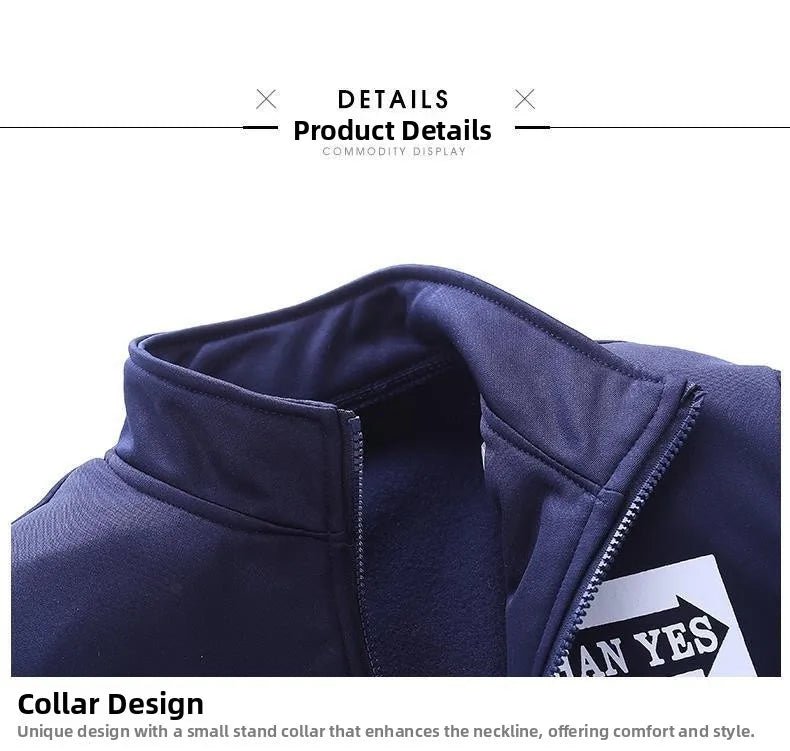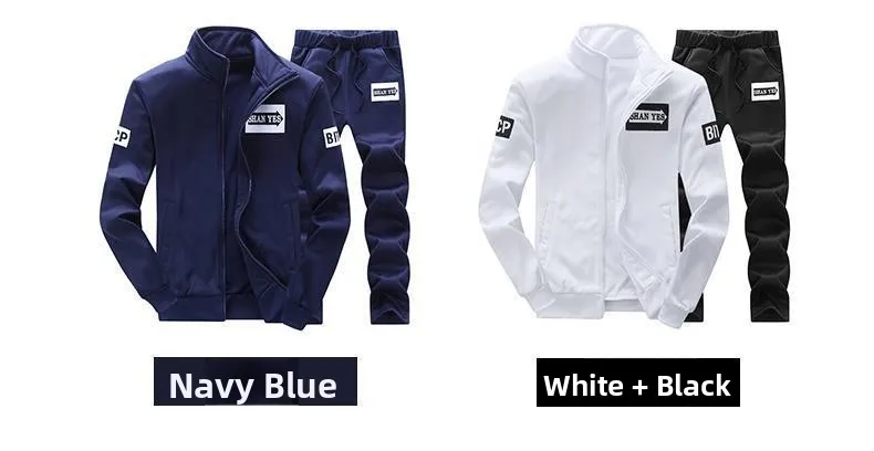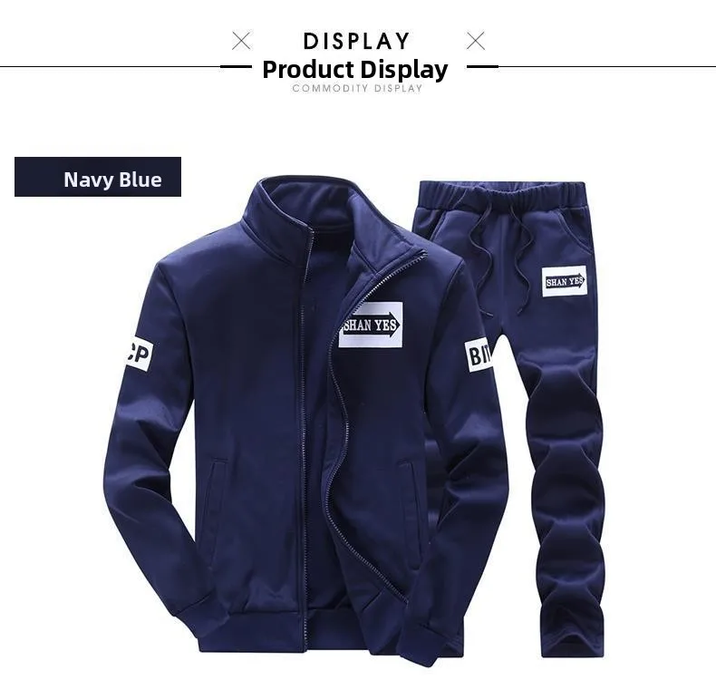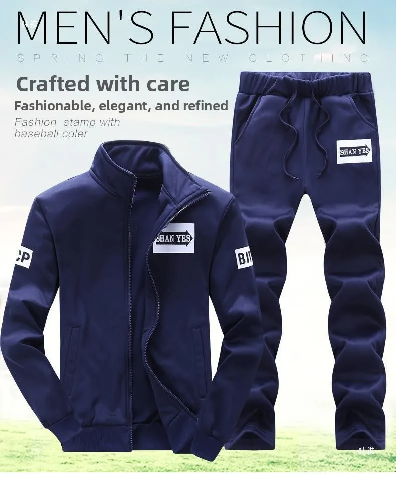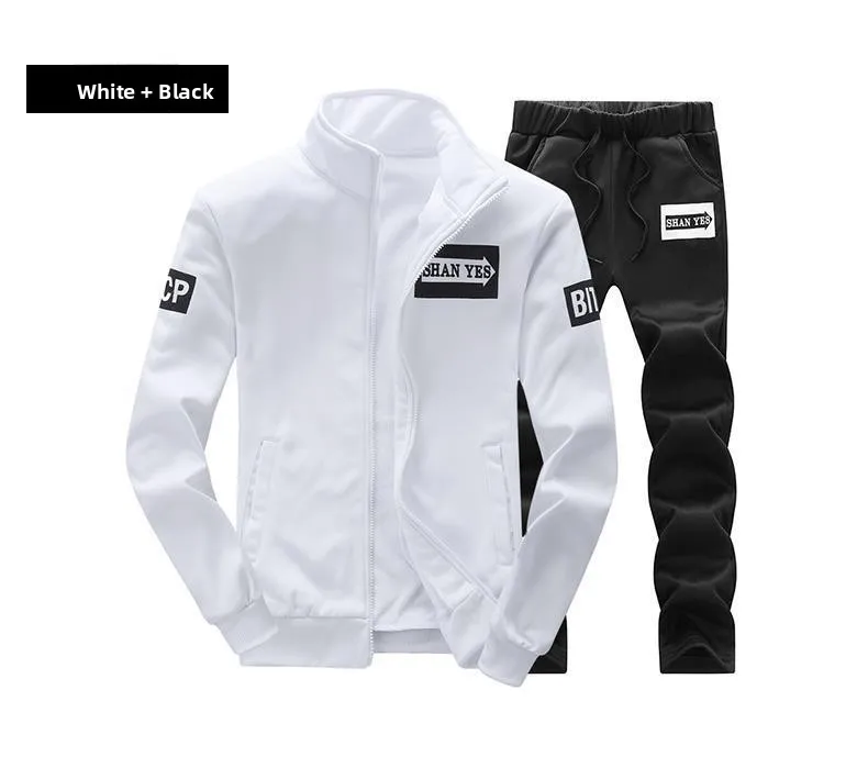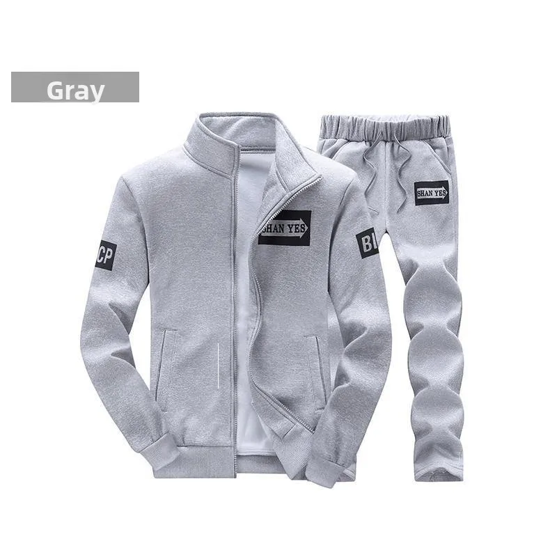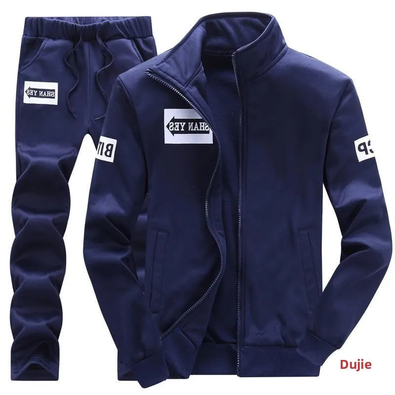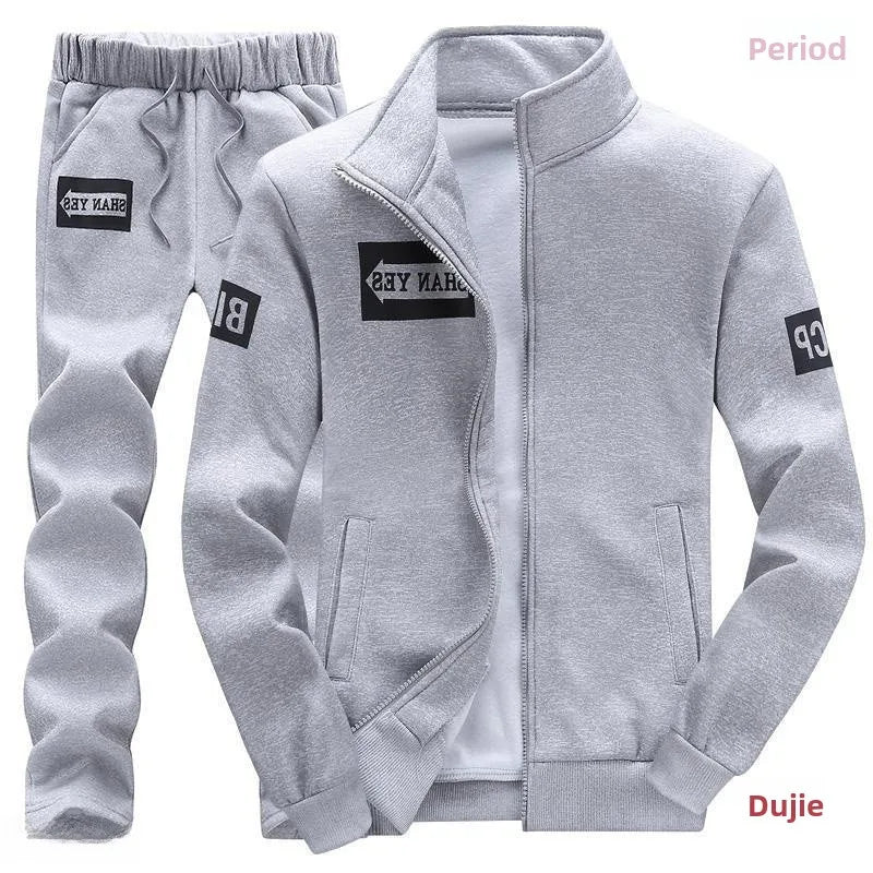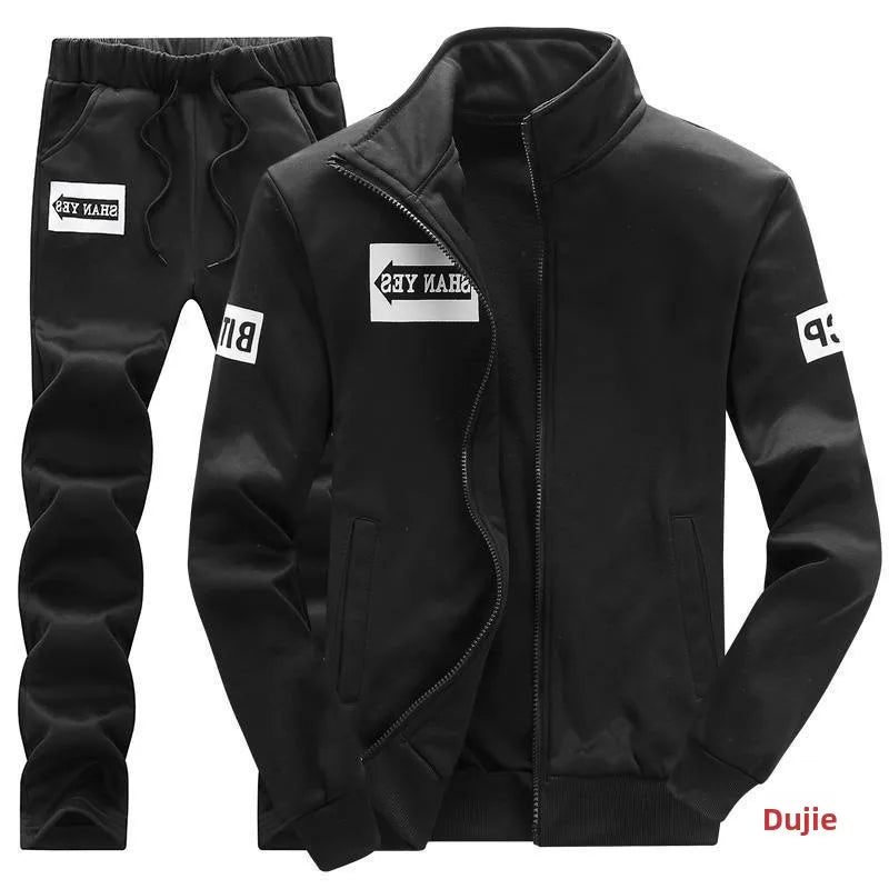 Trendy Hoodie Men's Stand Collar Jacket Casual Sportswear Long Pants Spring Autumn Youth plus Size Clothing Set
