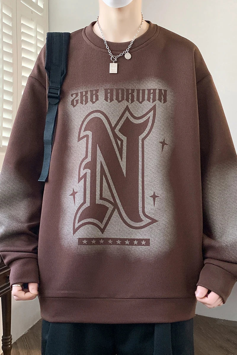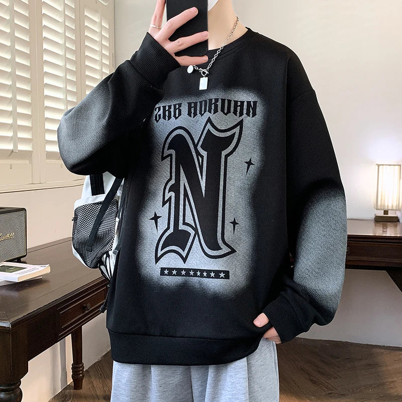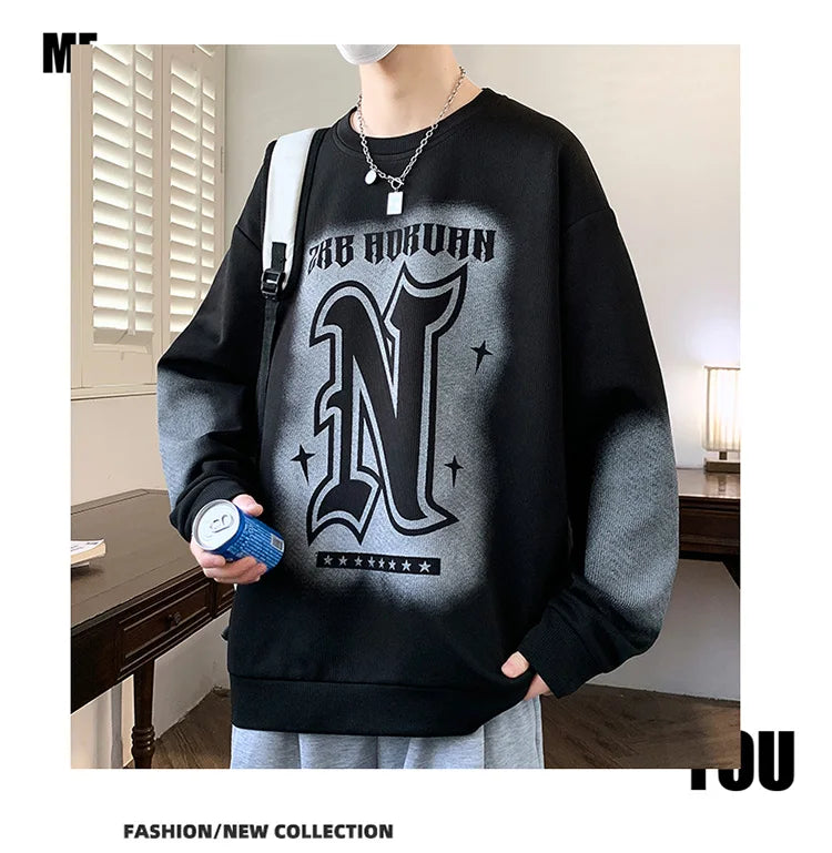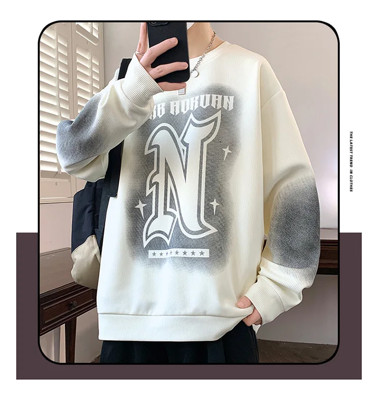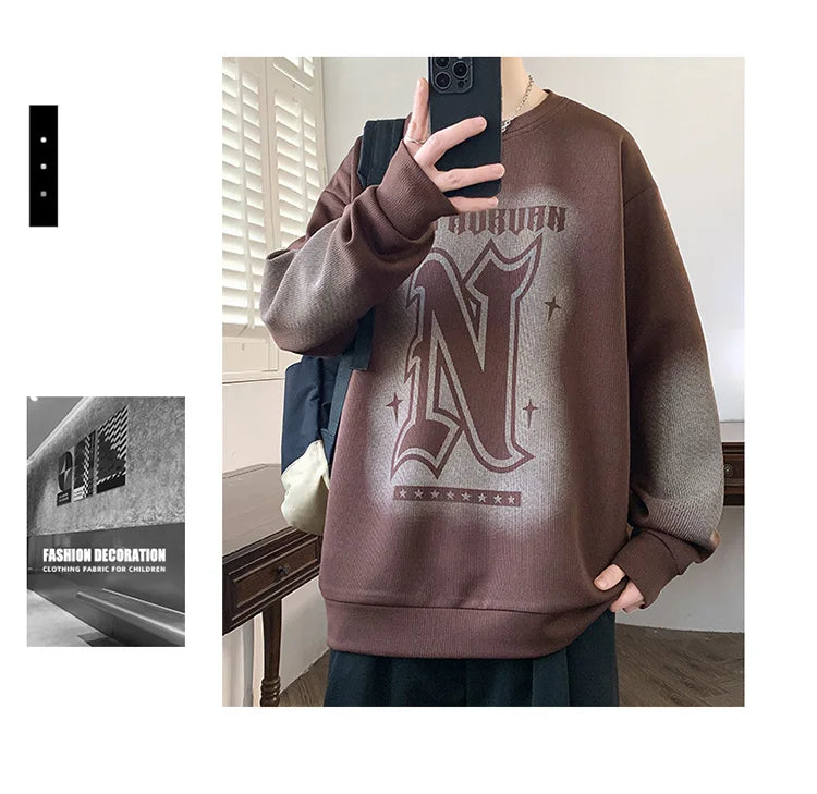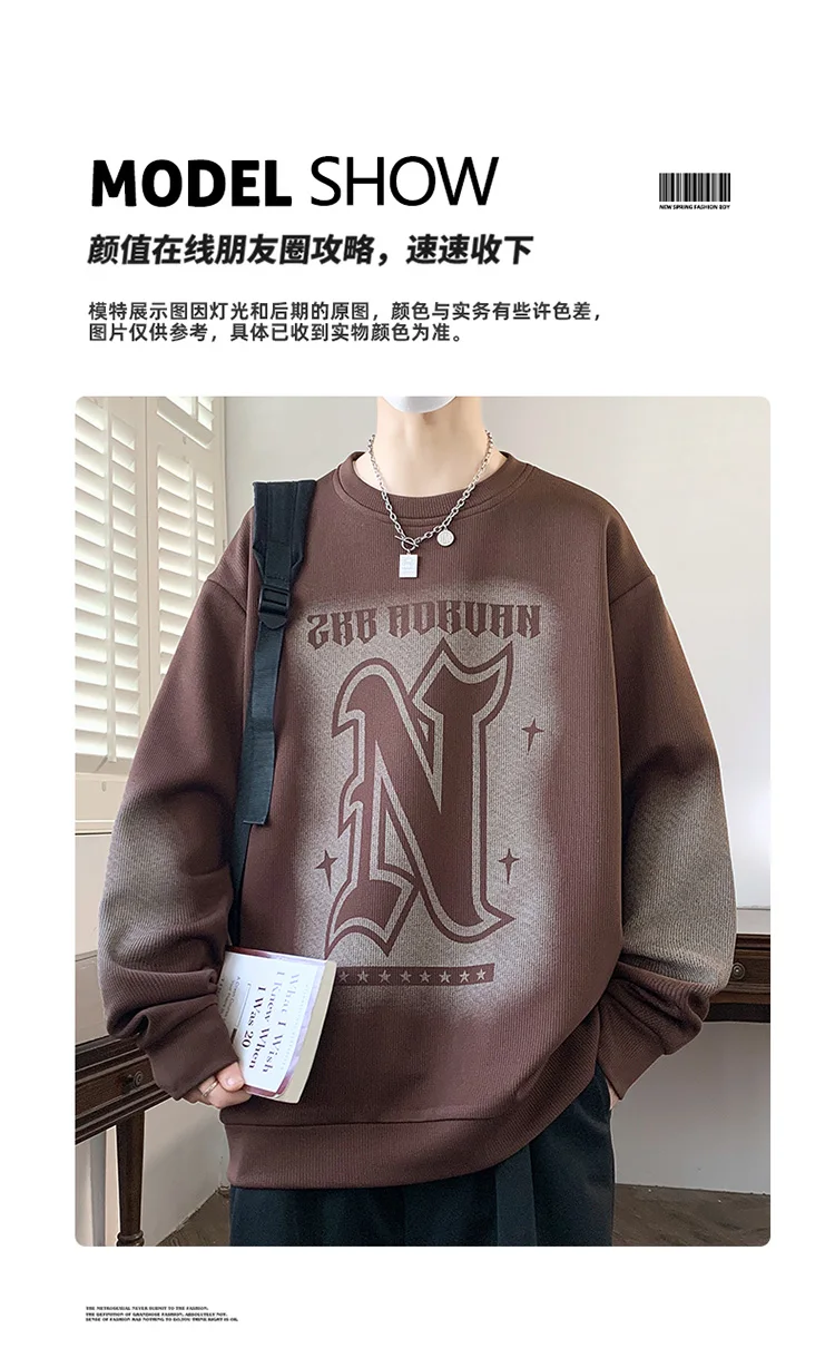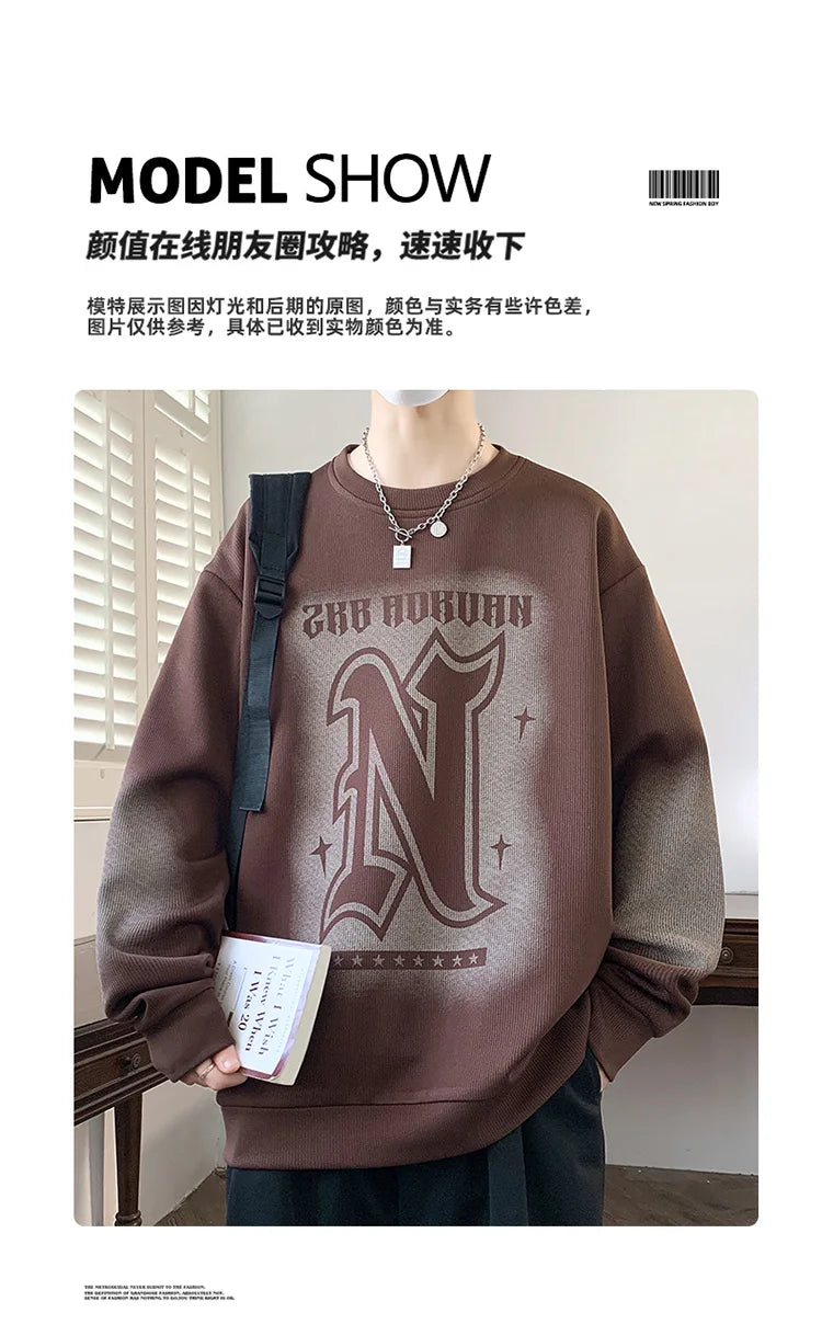 Trendy Men's Hoodie Fashionable Round-Neck Loose Casual Sweatshirt for Spring and Autumn Comfortable Youthful and Dynamic Top