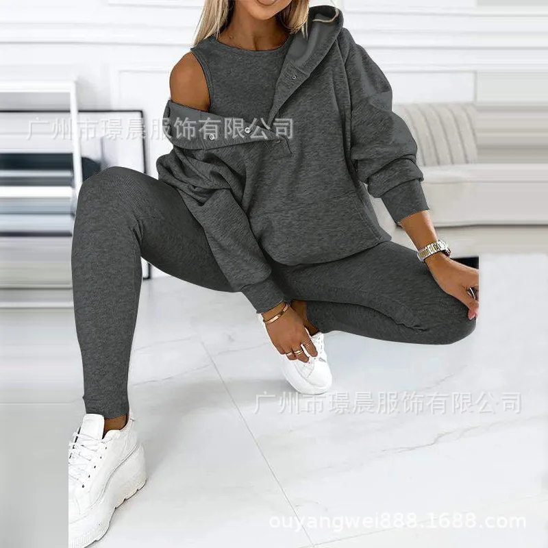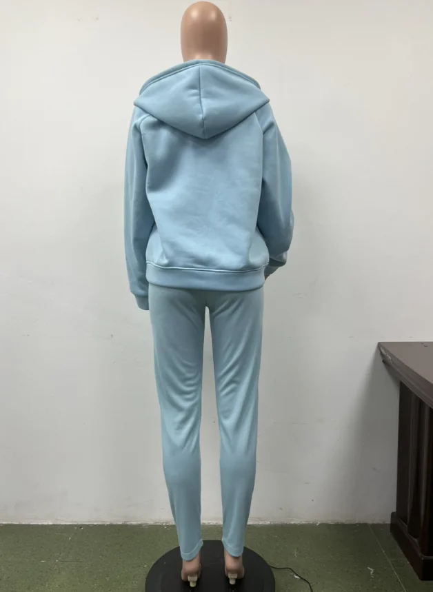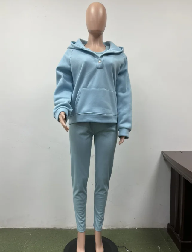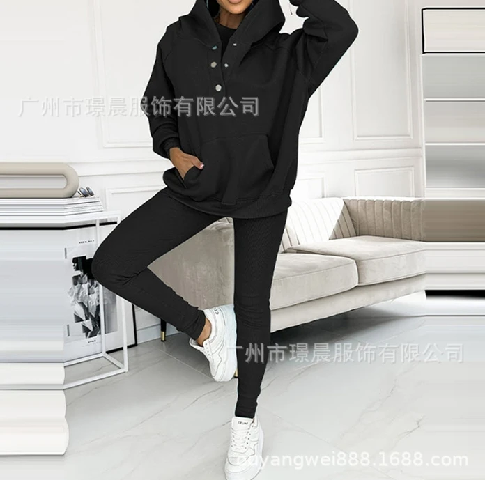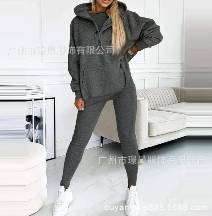 Two Piece Set for Women 2024 Solid Color Casual Comfortable Loose Fitting Long Sleeved Hoodie and Sports Plain Long Pants Set