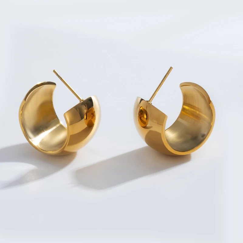 Wide bold C hoop earrings for women half sphere hoop earrings minimalism chic trendy women jewelry 2021