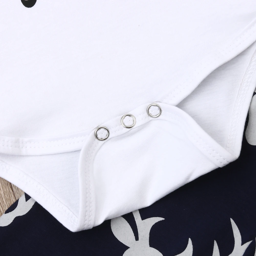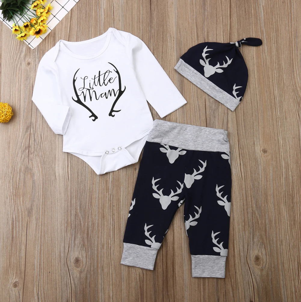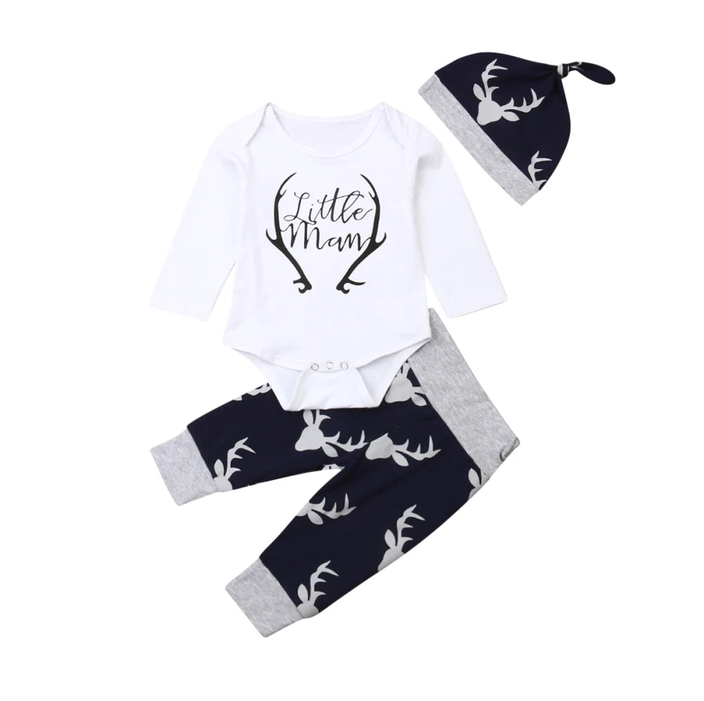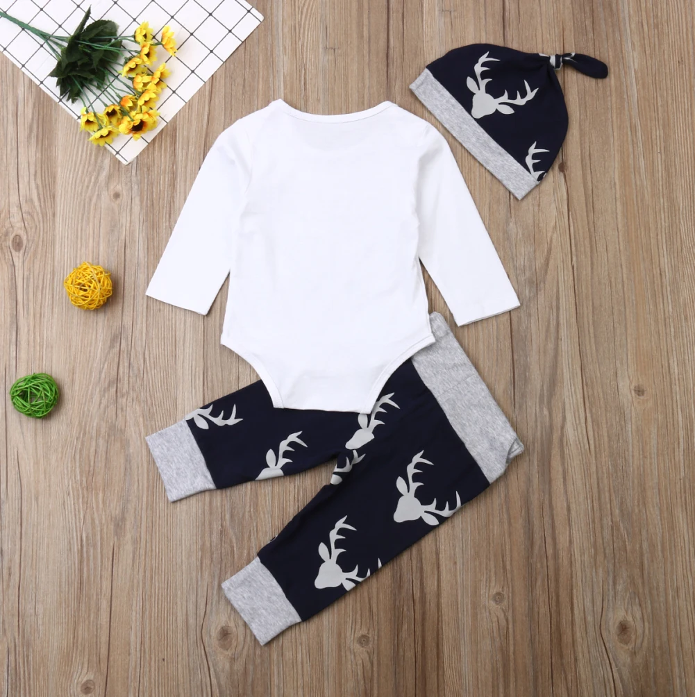 Winter Christmas 3PCS Newborn Baby Boy Clothes Set Costume Little Man Romper Deer Leggings Hat Warm Outfit Infant Clothes