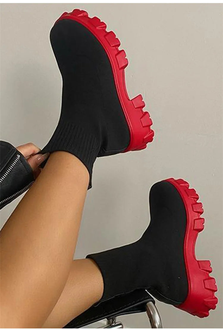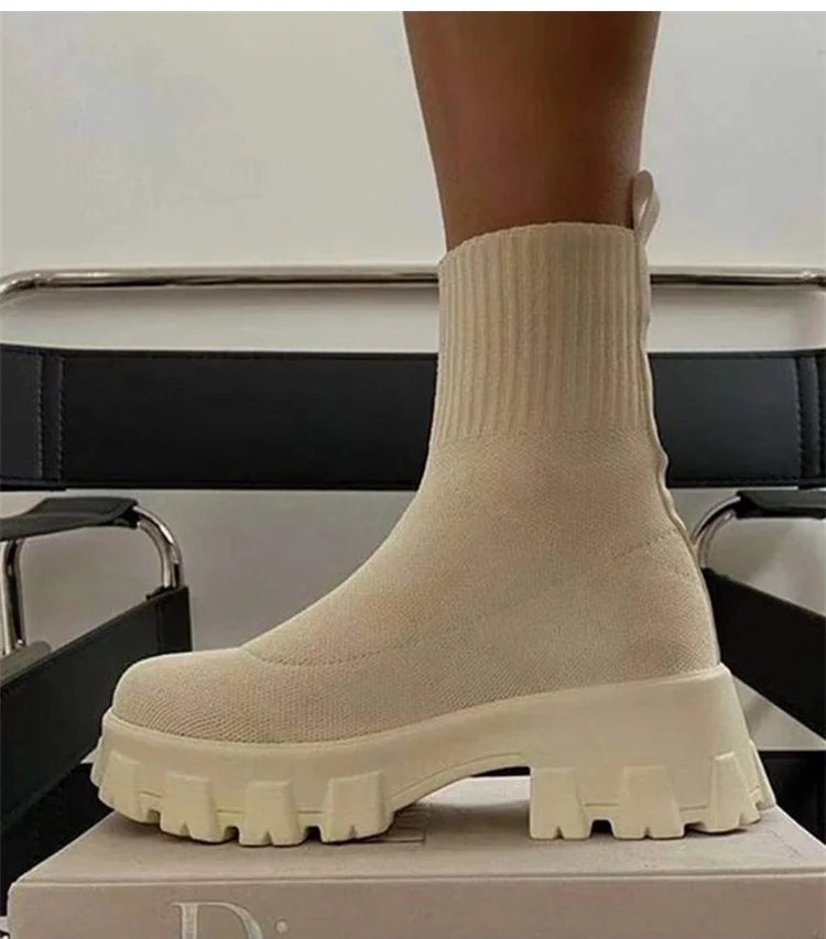 Women Boots Autumn Winter Boots Slip on Knitted Socks Shoes Women 2022 Platform Boots with Heels Botas De Mujer Female Botines