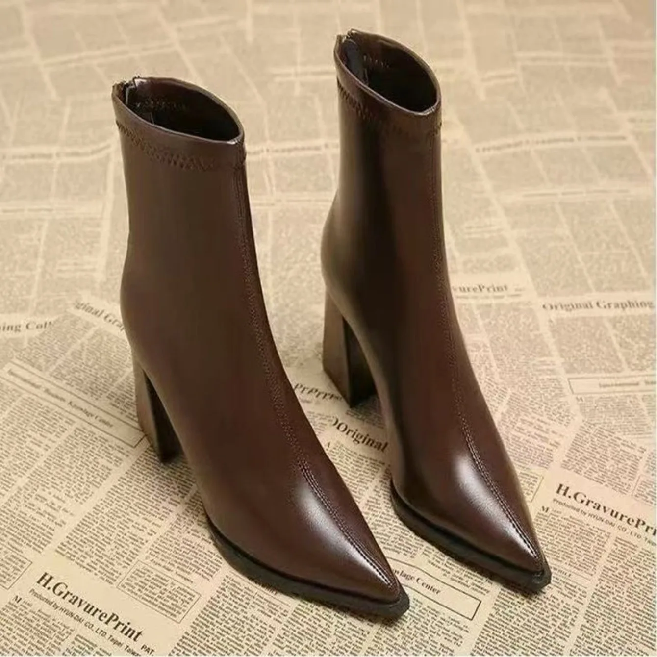 Women Elegant Outdoor Fashion Pointed Toe Boots New Retro Comfortable Ankle Boots High Heels Dress Shoes Women Zapatos De Mujer