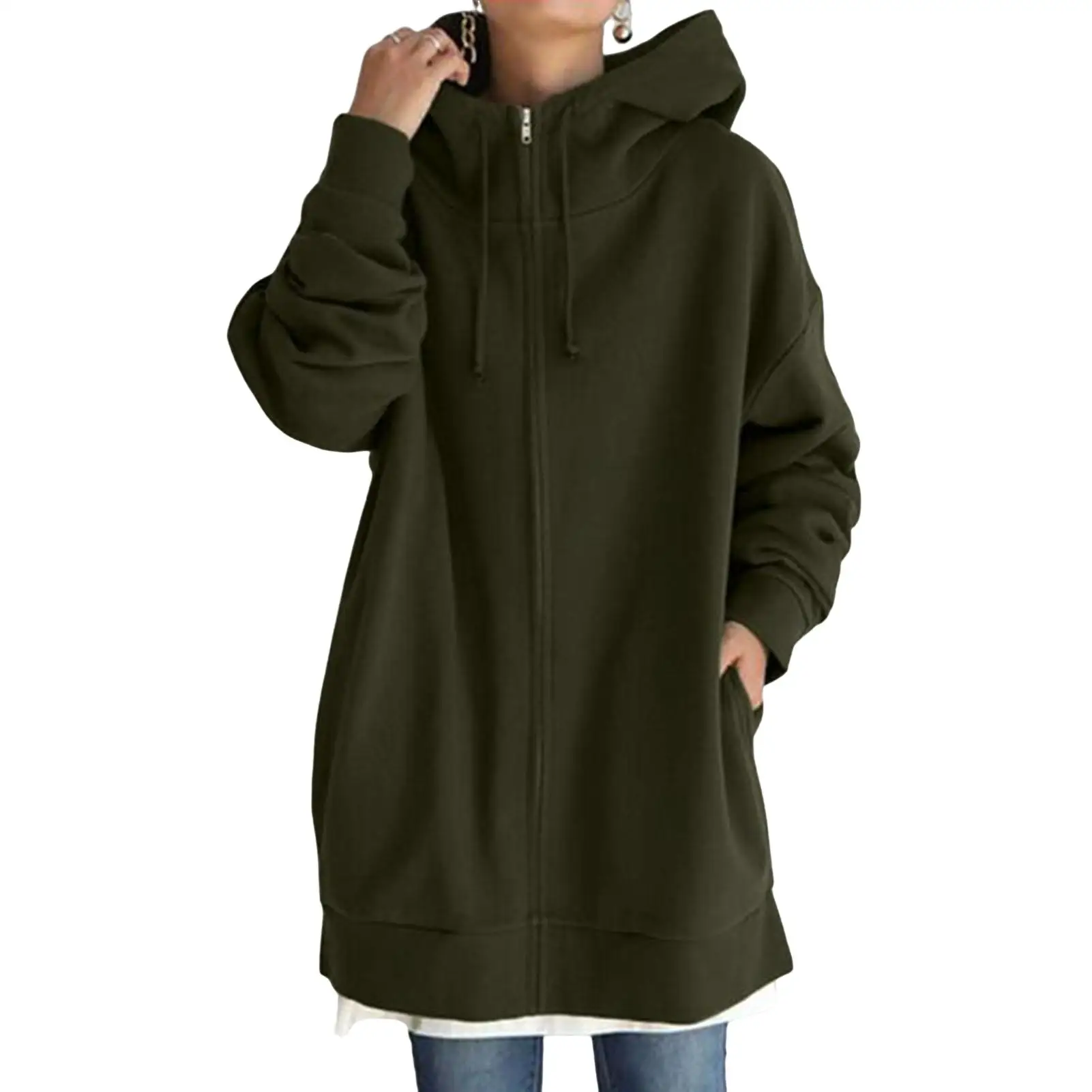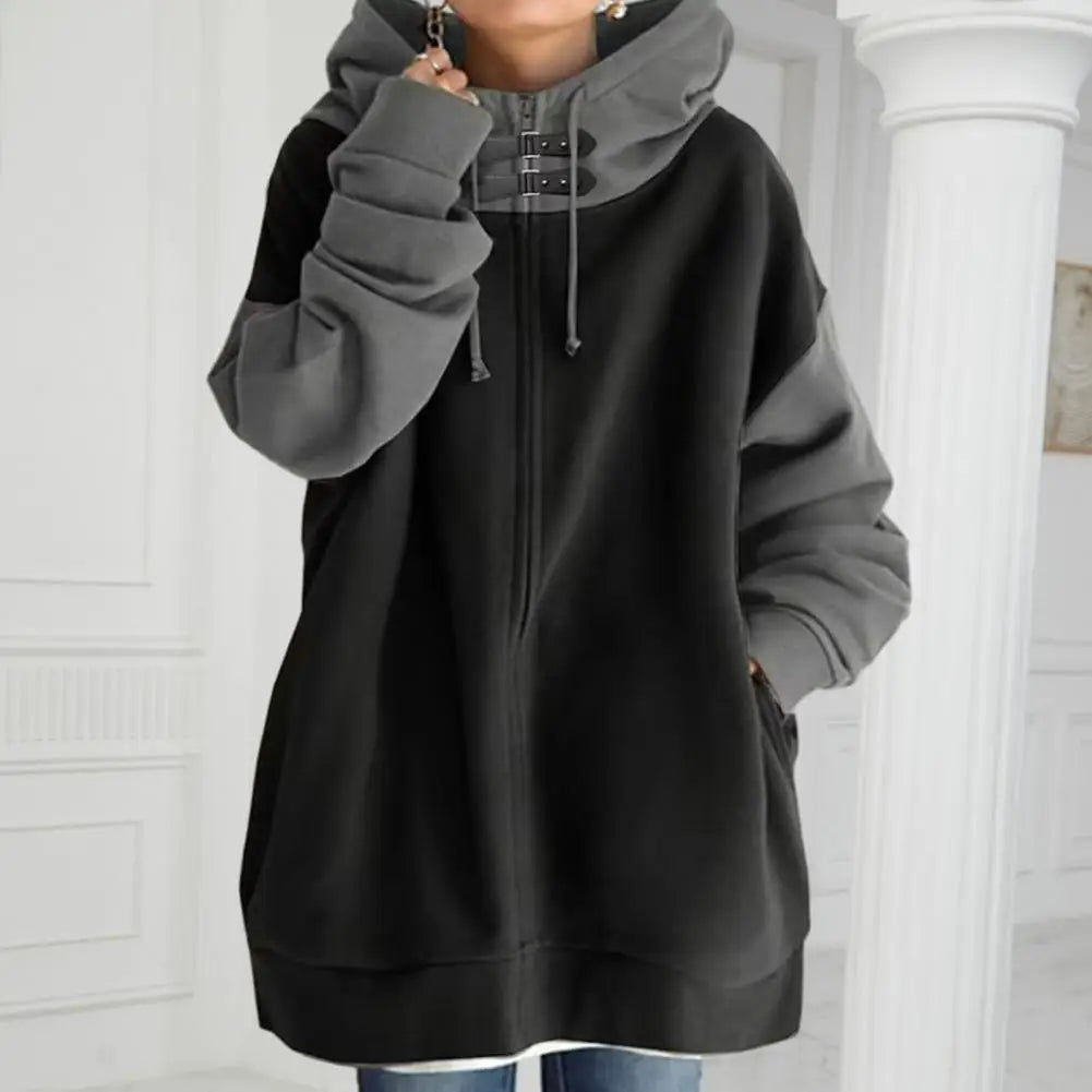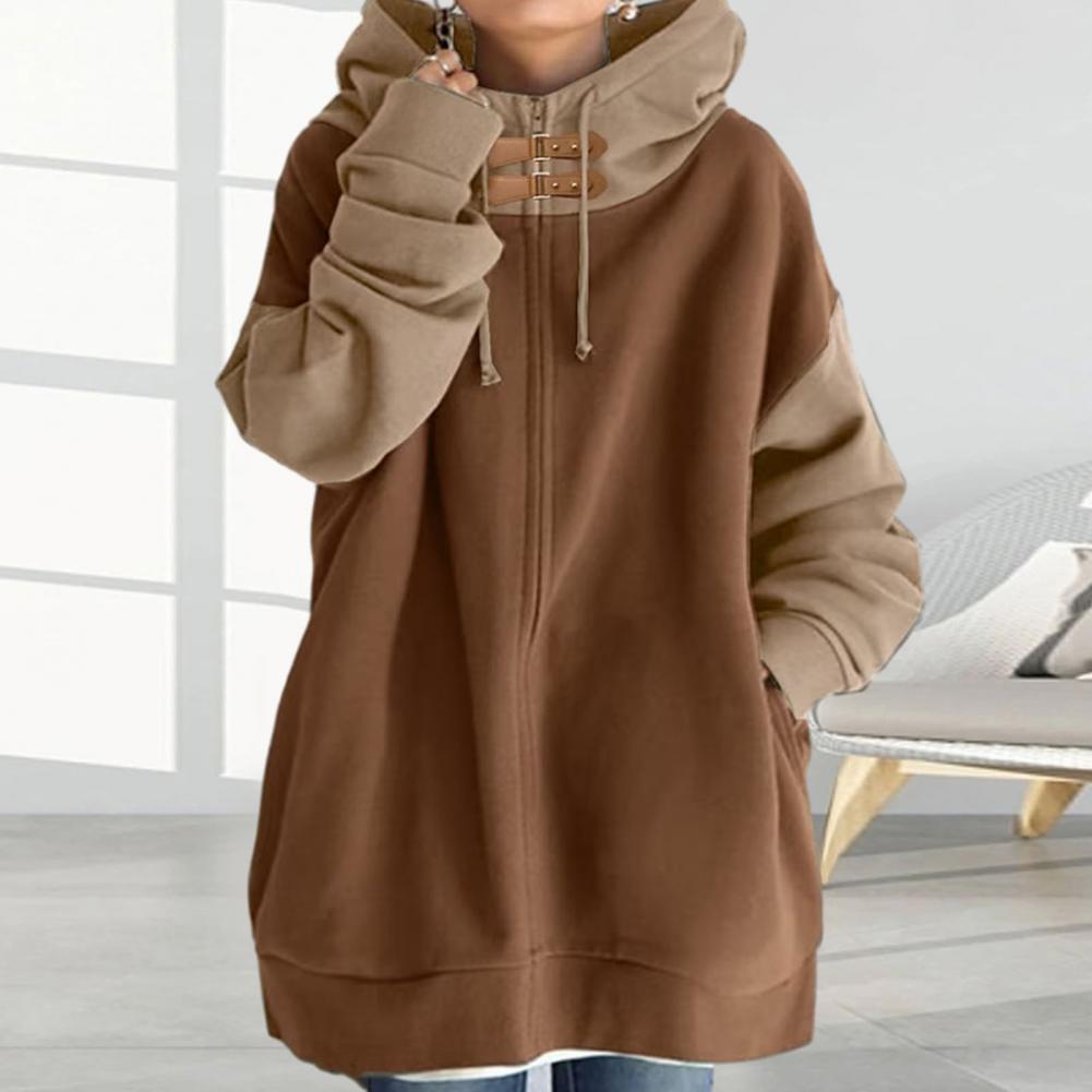 Women Hoodie Hidden Zip Women's Hoodie Trendy Patchwork Design Cozy Mid-length Pullover Winter/Autumn