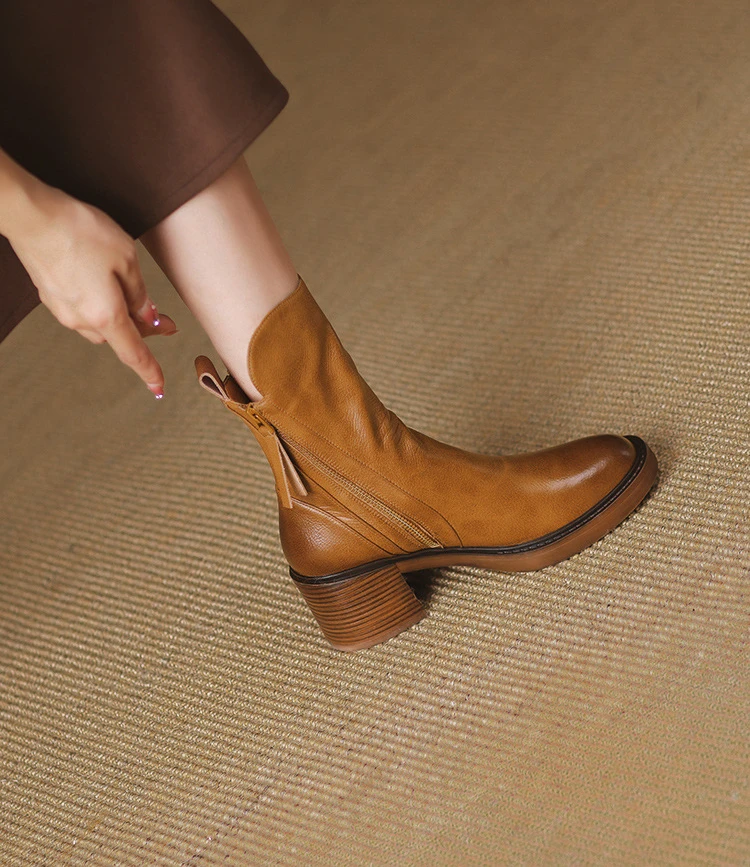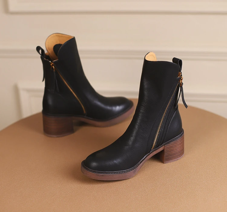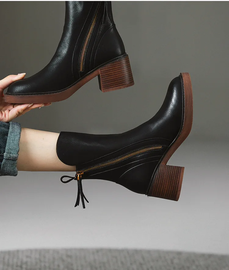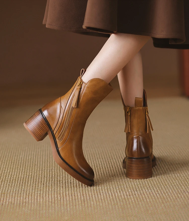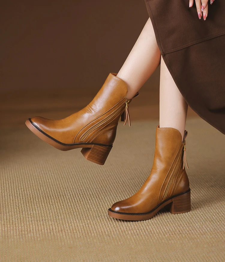 Women's Boots 2025 Spring and Autumn New Chelsea Boots Thick Heel Brown Short Leather Shoes for Women High Heels platform shoes