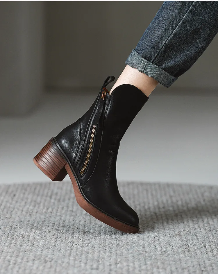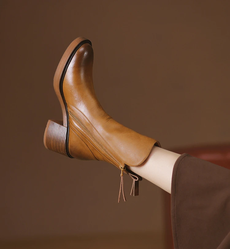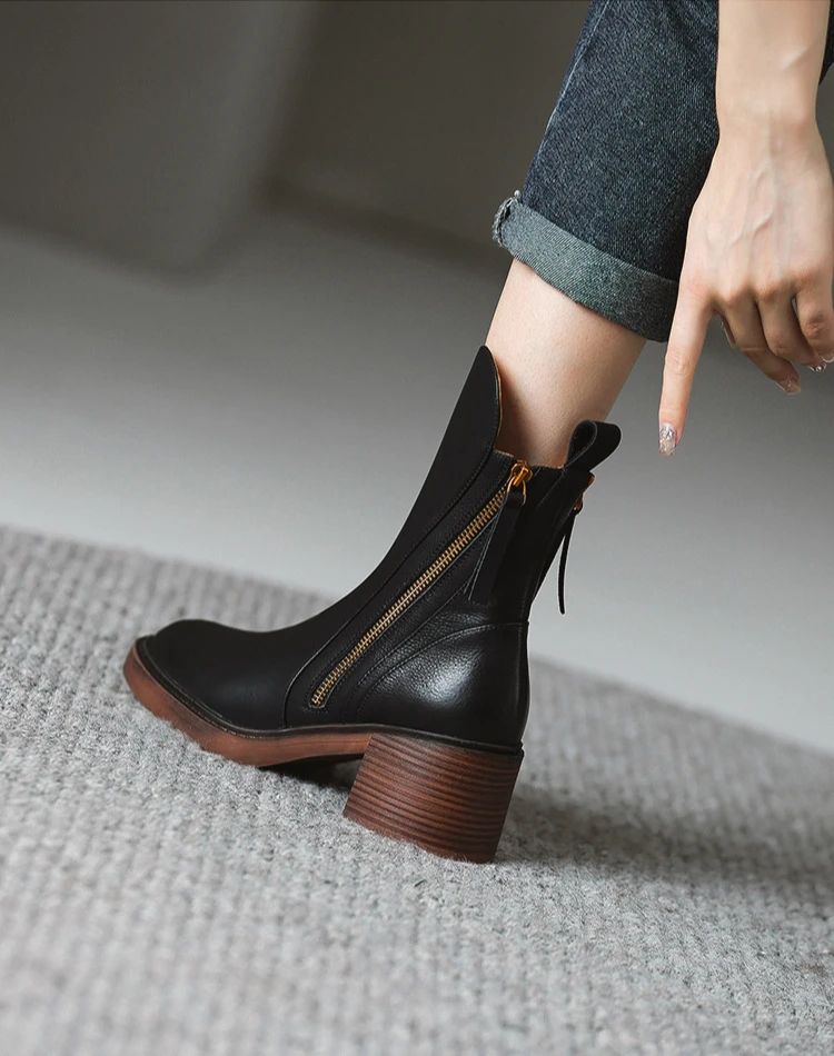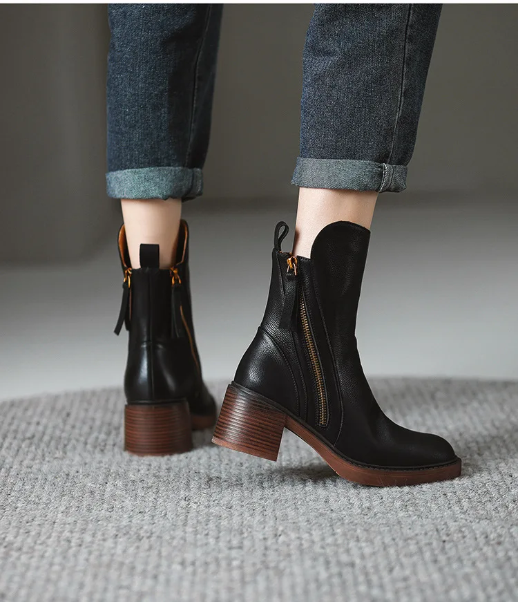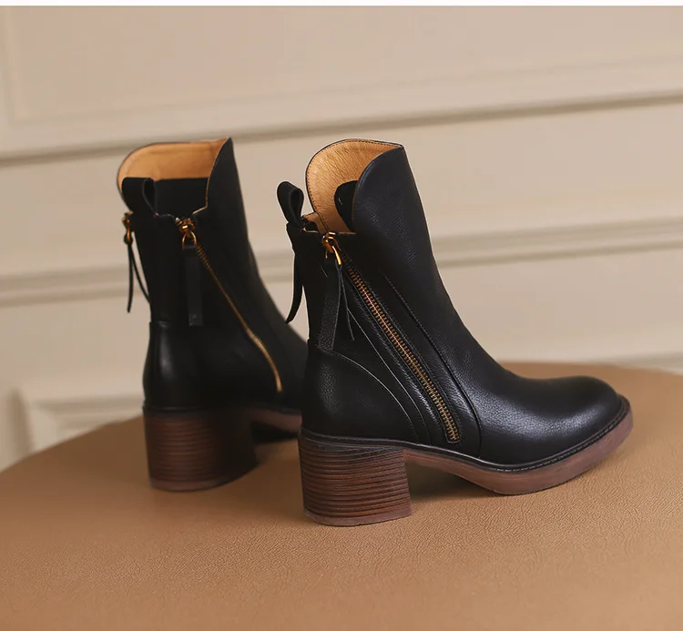 Women's Boots 2025 Spring and Autumn New Chelsea Boots Thick Heel Brown Short Leather Shoes for Women High Heels platform shoes