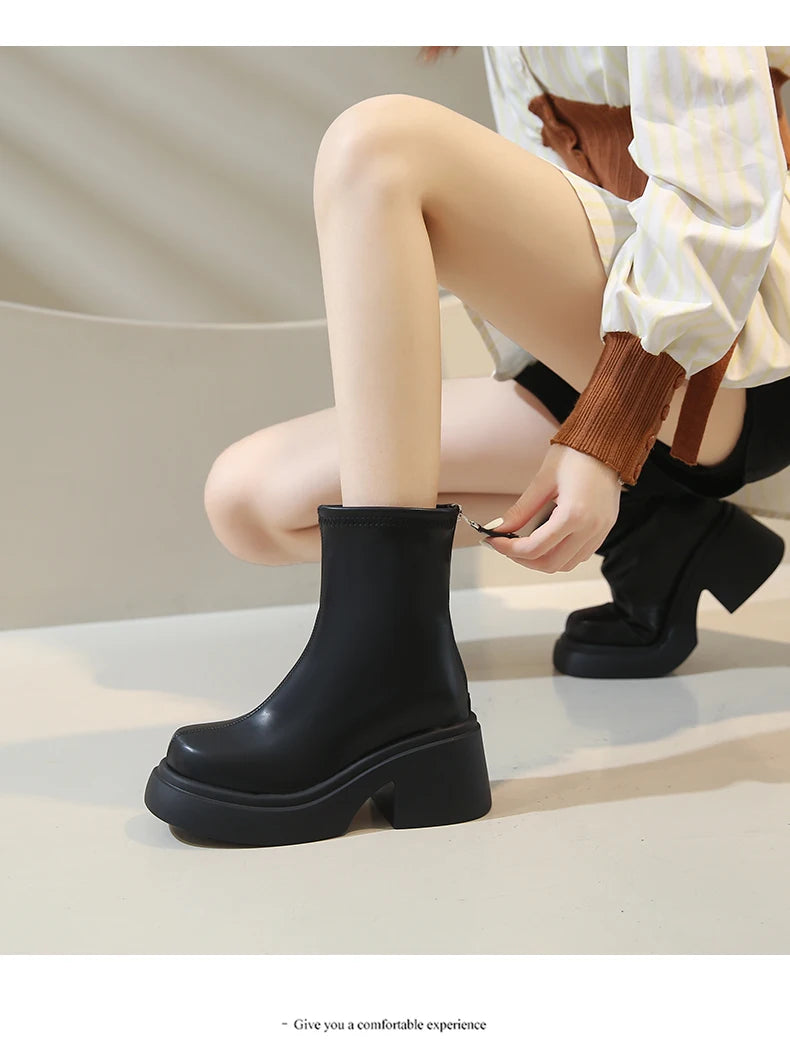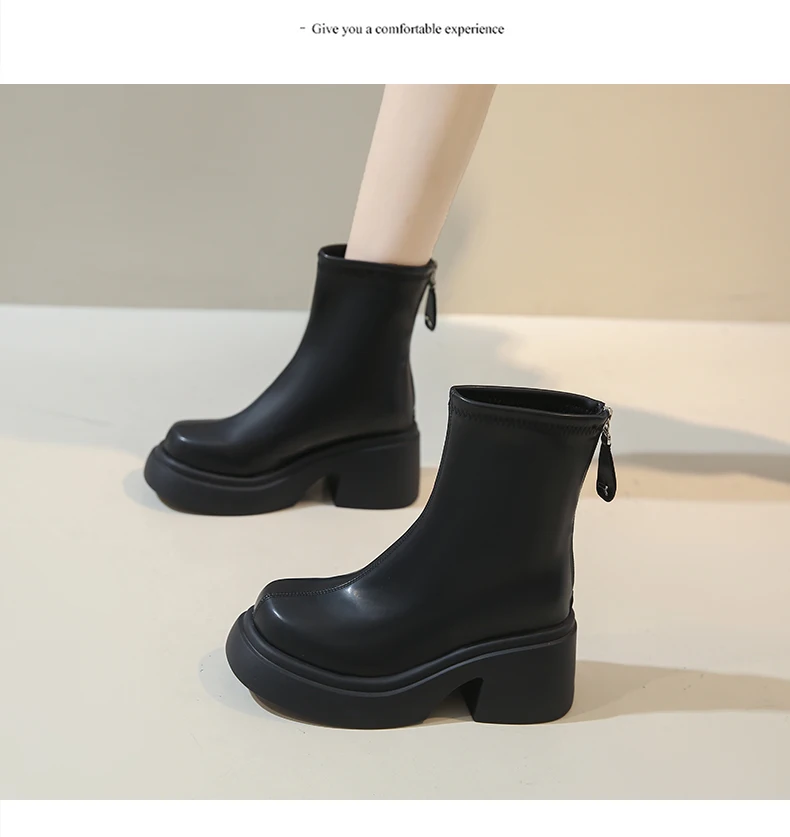 Women's Boots Autumn Luxury Designer Female Shoes Winter Footwear Boots-Women Black Fashion High Heel Ladies Rock Ankle 2025